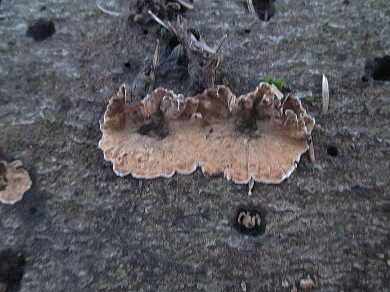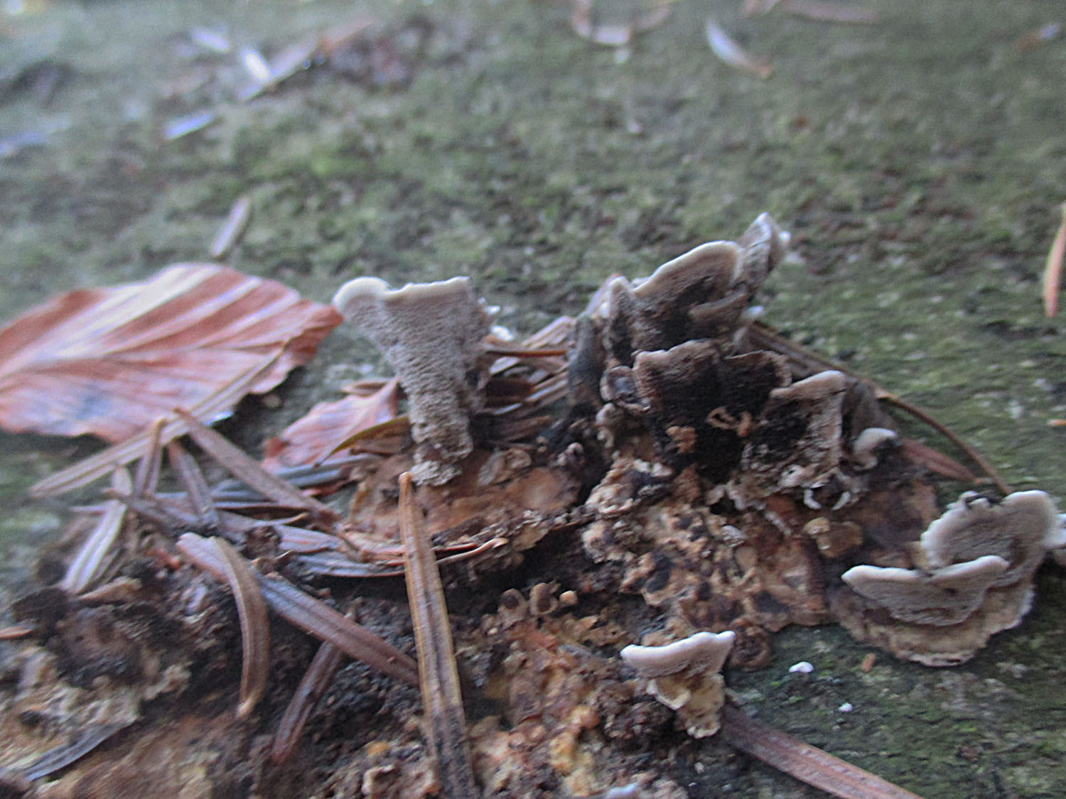 Aha, da war ich ehrlich gesagt ziemlich durcheinander. Mich deuchte, daß du mit "Phellinus" den klobigeren fruchtkörper in der Mitte meinst (auf Bild 3), und mit "???" die Schichtpilze drum herum.