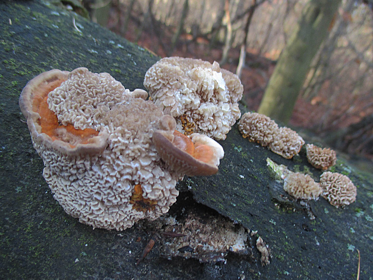 Nr. 11 halte ich für einen Birkenblättling (Lenzites betulina). Etwas im Wuchs gestört, dann kann der auch mal poroid werden. Unter dem normal entwickelten Hut sind allerdings schon Lamellen erkennbar.