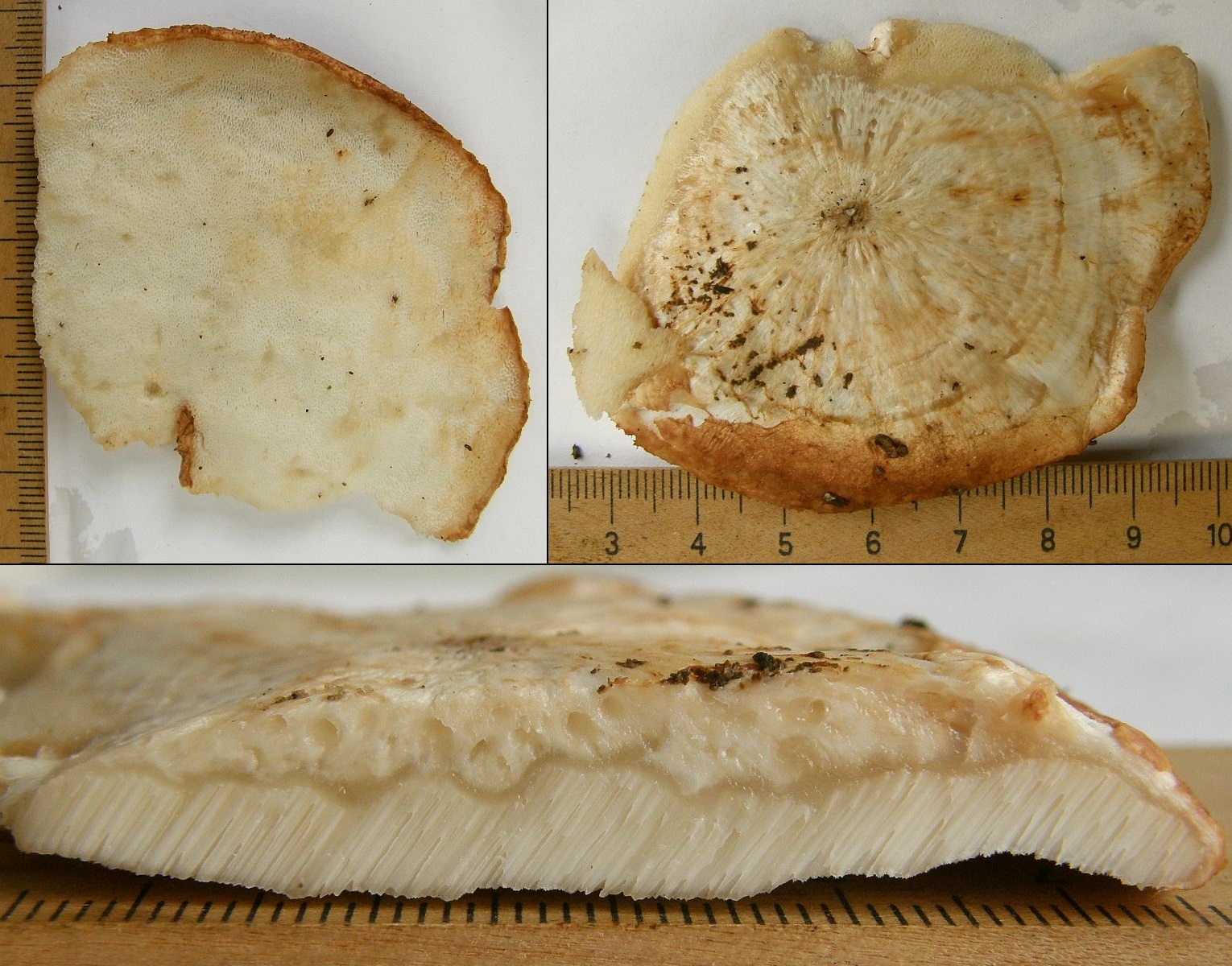 auch ich kann auf deinen neuen Fotos nichts erkennen. Die beiden Porlinge, die ich als Vermutung zu deinen Makrofotos erwähnt hatte, beruhen auf den eher seltenen Wirt Douglasie und den angegebenen Sporenmaßen. Beide Arten kommen auf Douglasie vor. Genauer geht es mit den vorhandenen Angaben nicht.