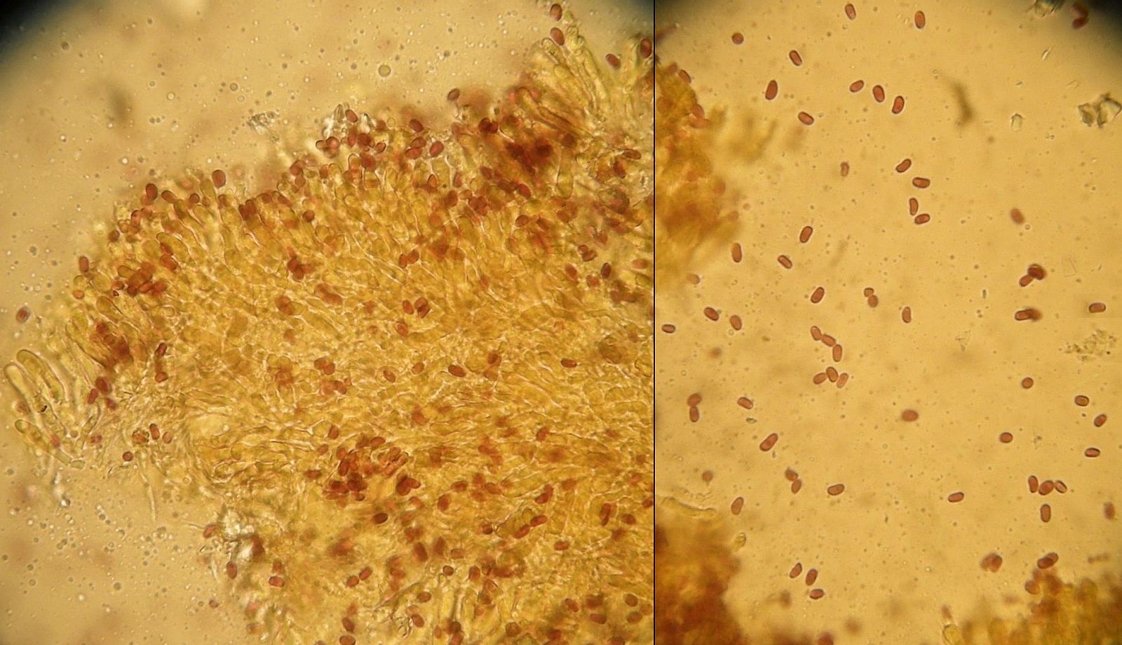 Auch auf den neuen Bildern gelingt es mir nicht, einzelne Sporen zu erkennen. Nicht, daß das irgendwelche "Fremdkörper" sind, oder Fragmente von anderen Strukturen wie Hyphen oder Zystiden.