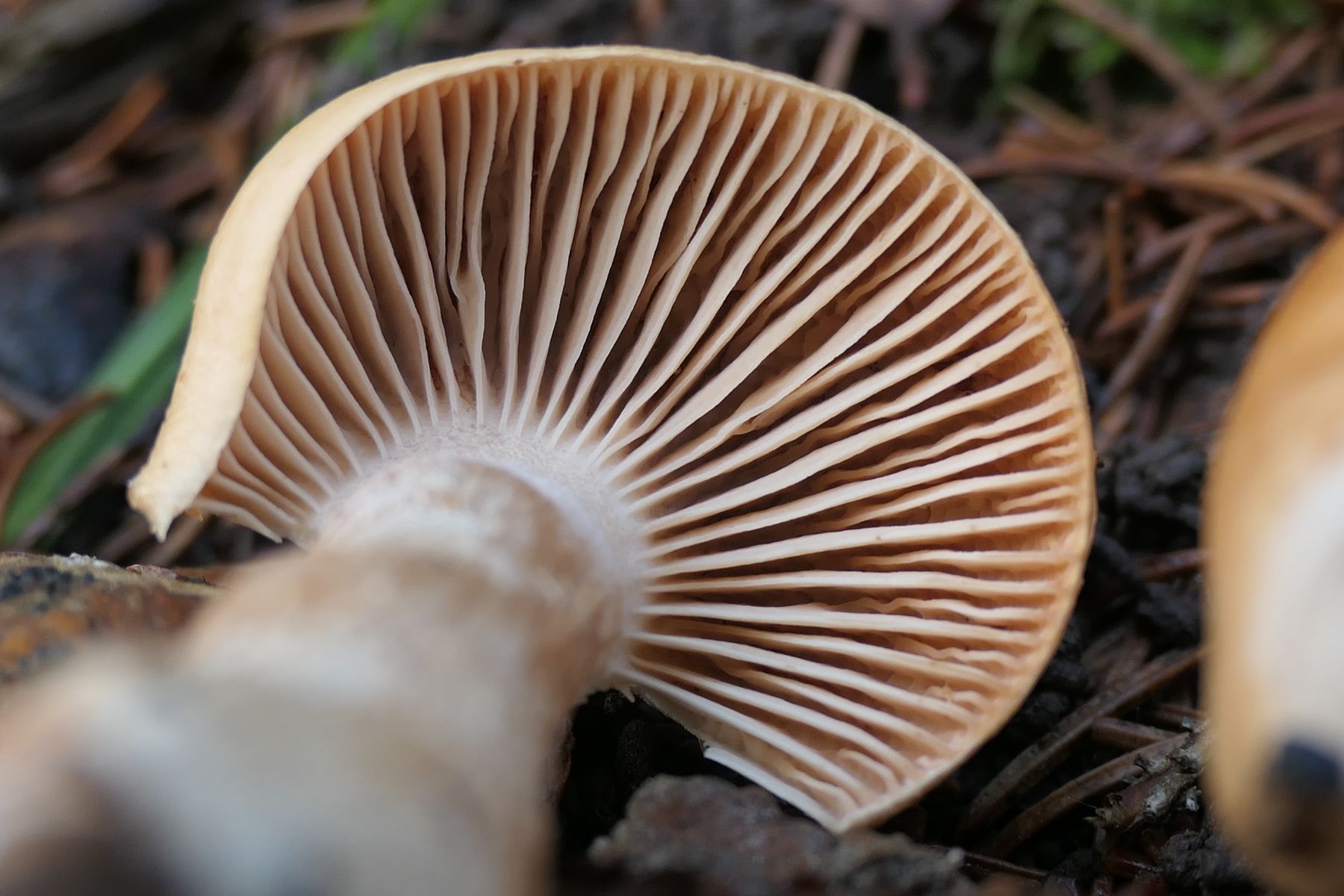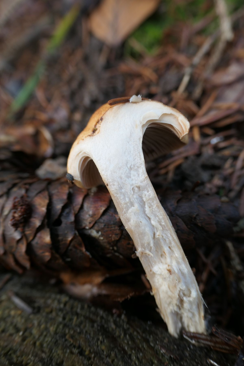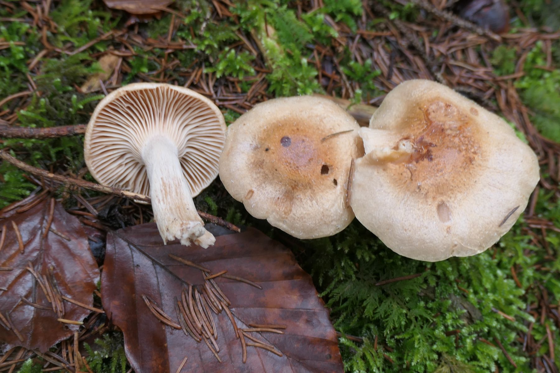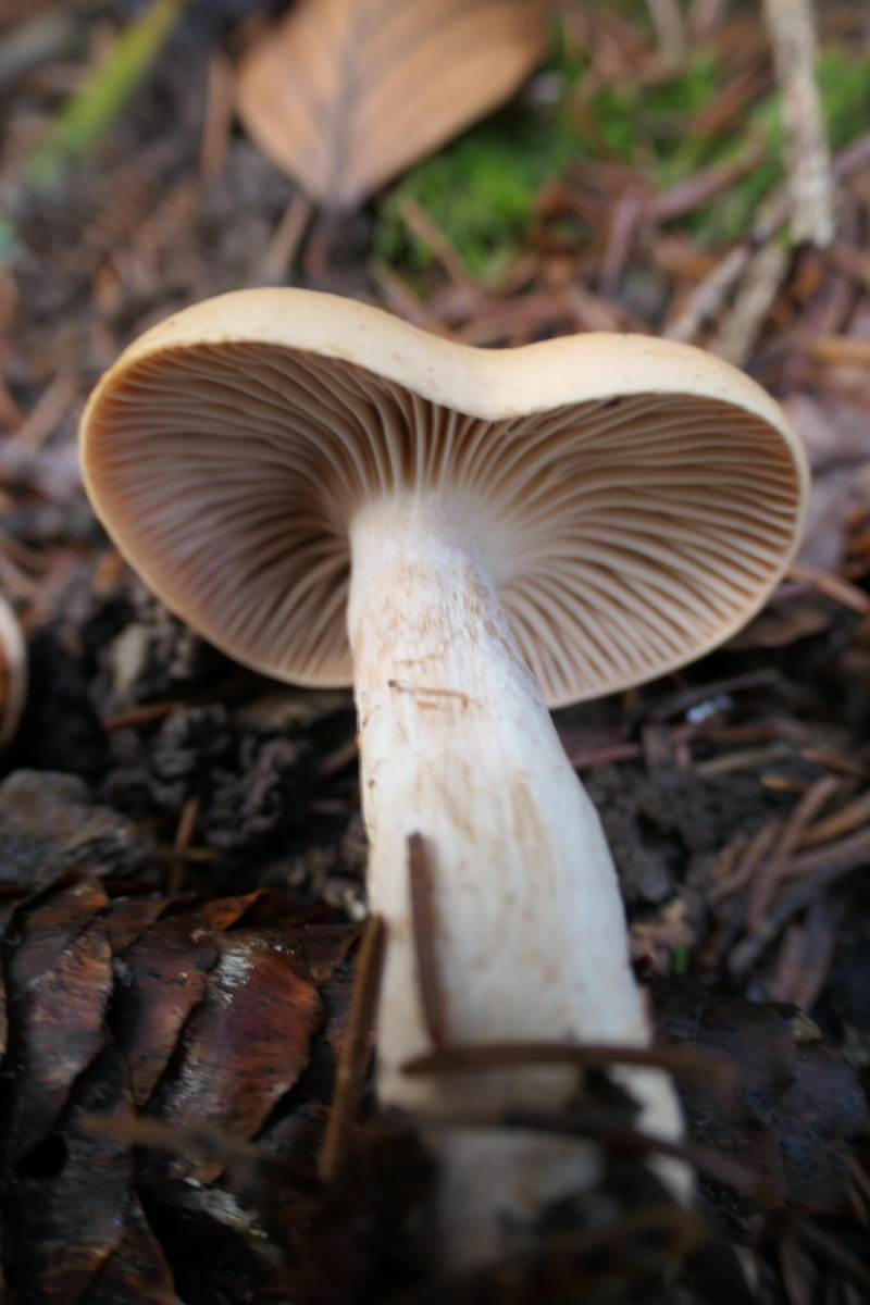 die ich am ehesten bei den Trichterlingen zuordne? - auffällig der etwas wellig gebuckelte Stiel, auf den Fotos nur knapp erkennbar,