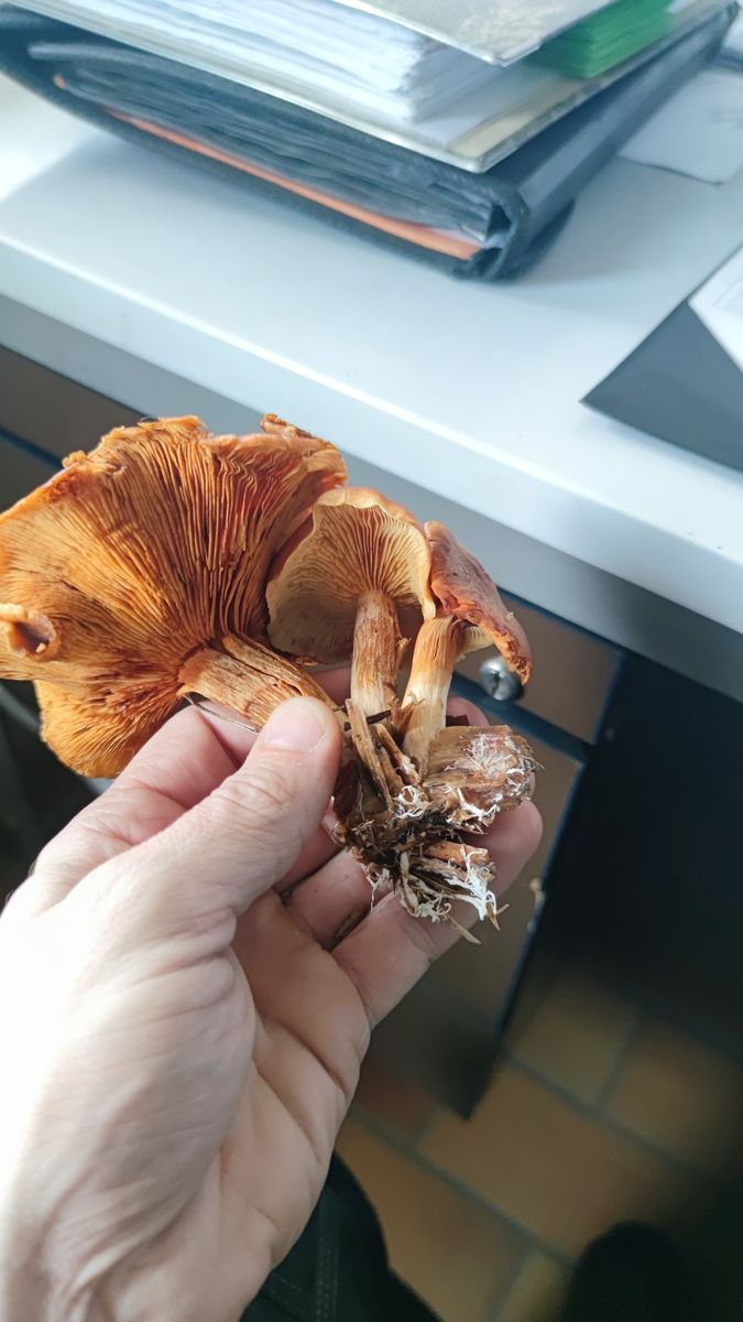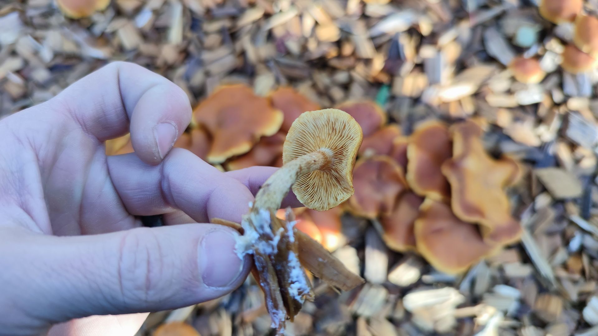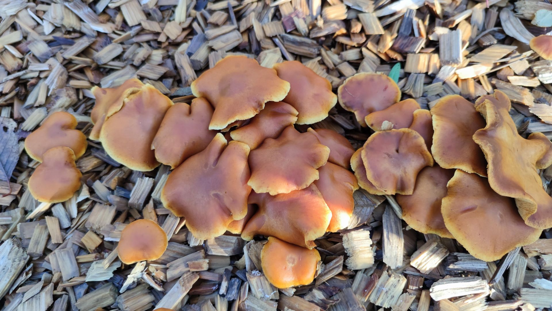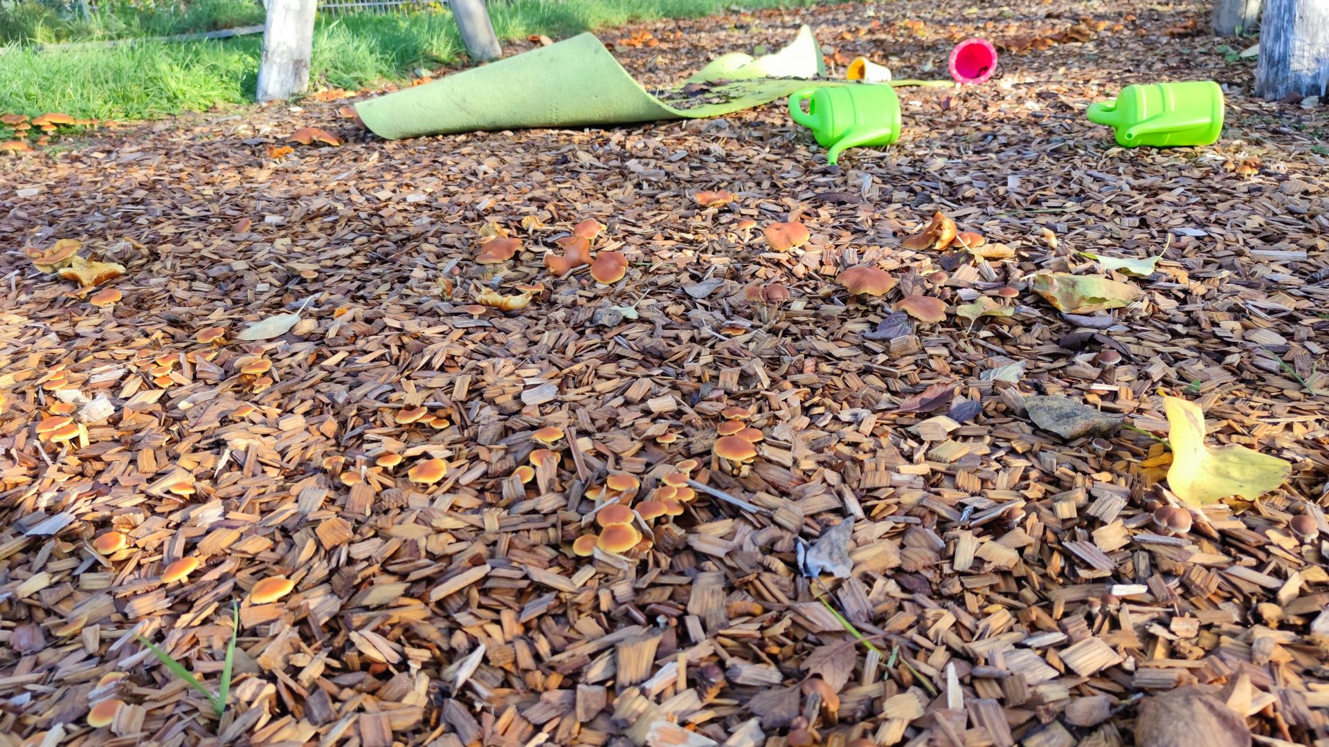 rostbraune pilze auf Hackschnitzel(Kindergarten)