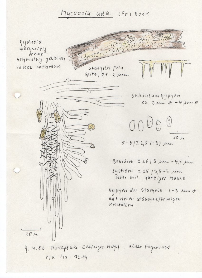 Nach Eriksson & Ryvarden Vol. 4 richte ich mich auch noch. Du kannst mir das Exsikkat ja mal zusenden. Ich habe schon mehrere intermediäre Formen bei den Mycoacia-Arten festgestellt.