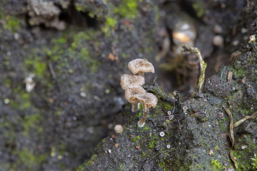 Die Fruchtkörper sind bis zu 4mm groß und wuchsen an einer leichten Böschung.