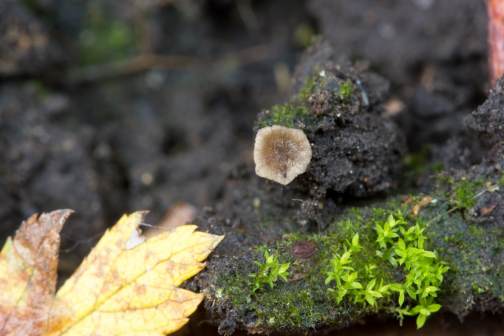 Die Fruchtkörper sind bis zu 4mm groß und wuchsen an einer leichten Böschung.