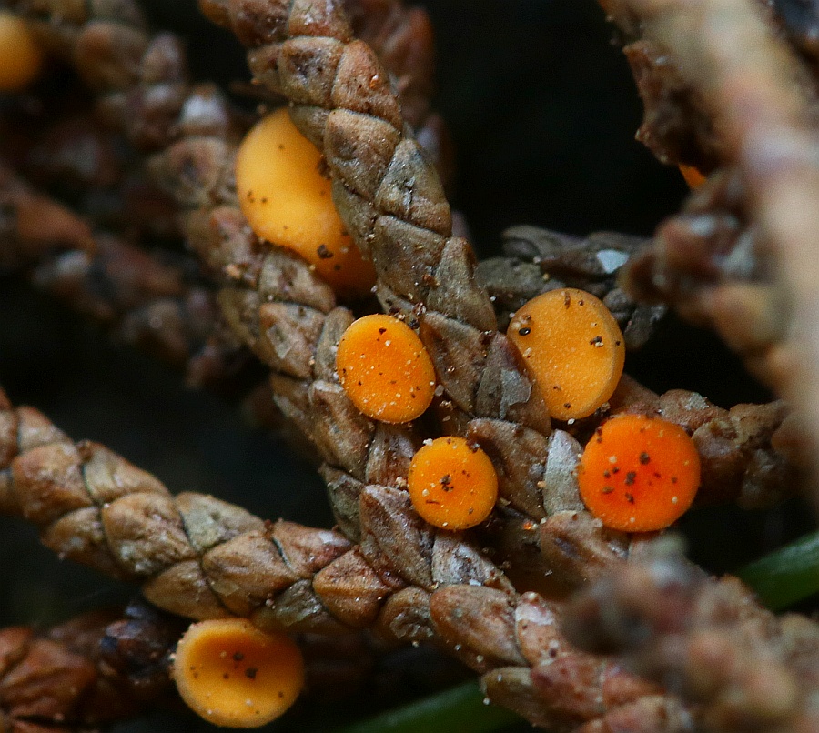 It was nice to see again this tiny orange fungus - Pithya cupressina on fallen leaves of Cupressus sempervirens. (Malta, 10-12-22).