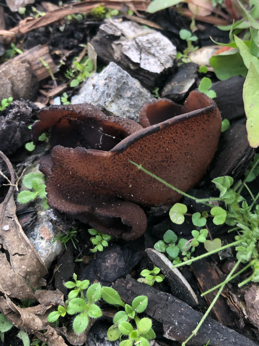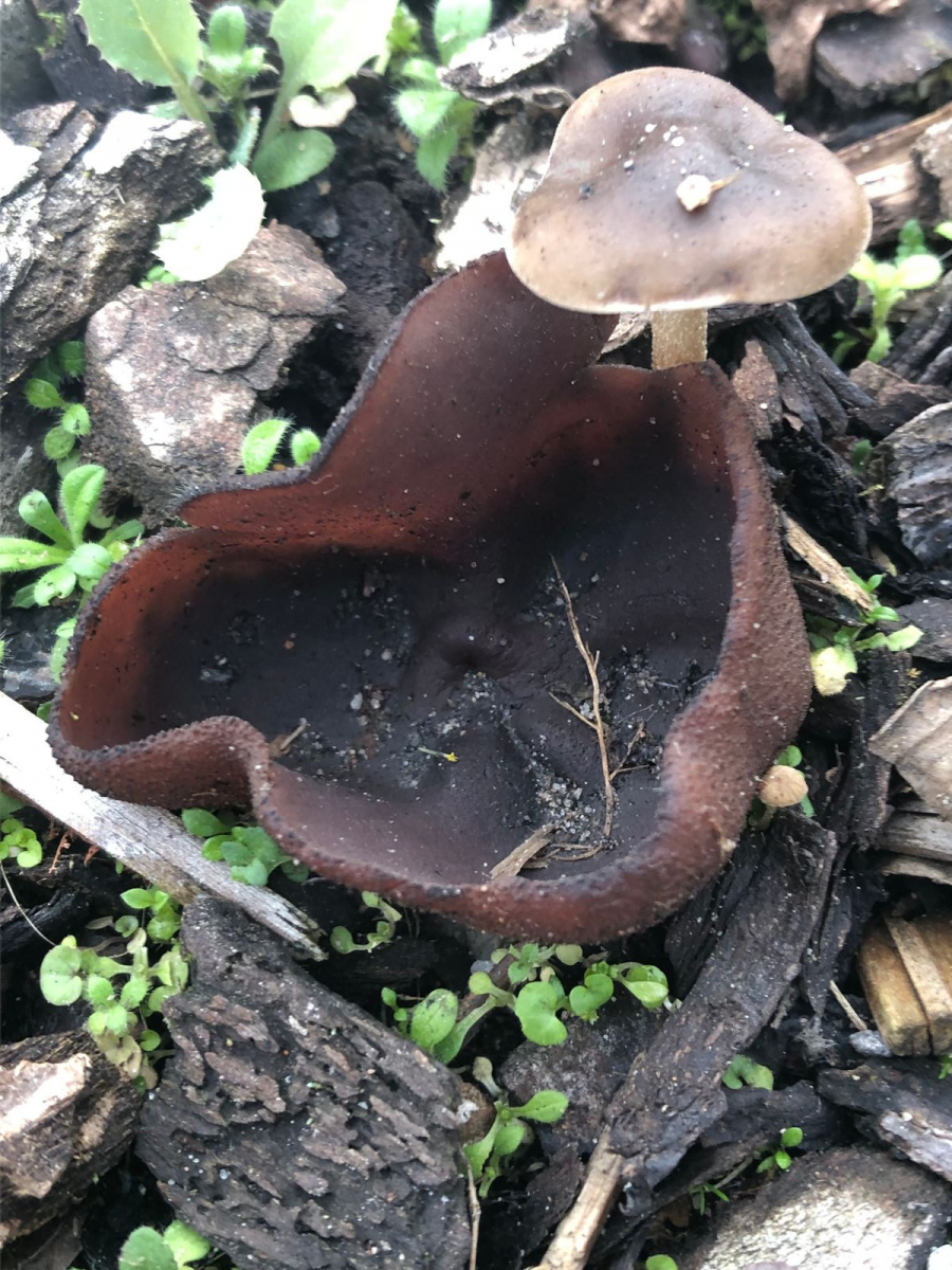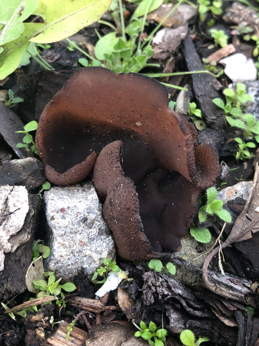 Noch wachsen Pilze. Ich habe am 9. Dezember. Erst braune Öhrlinge o. Becherlinge im Industriegebiet von Wiesloch in einer mit Rindenmulch angelegten Hecke bei einem Parkplatz gefunden.