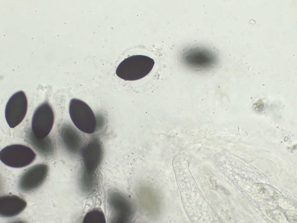 Sporen: 20,7-21,9-23,1 x 11,6-12,2-13,3µ, das Pedicell 6x1,5µ, mit apikalem Keimporus