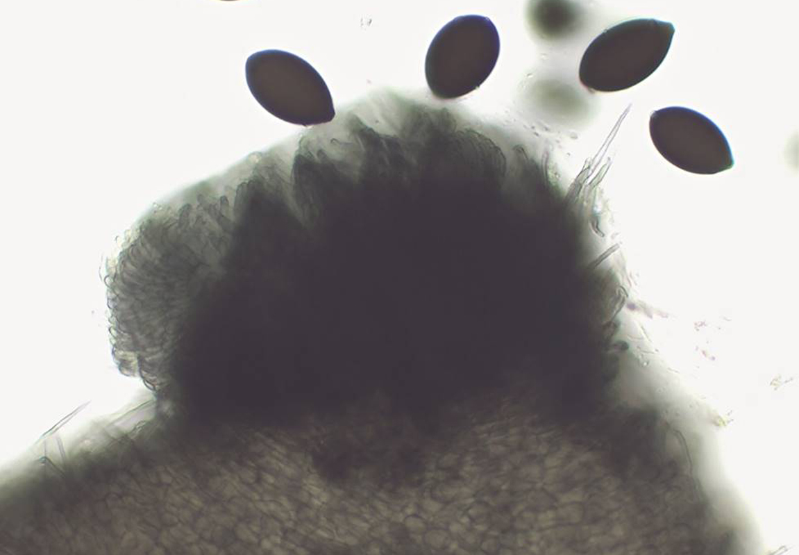 Perithecium: 500x400µ, mit Randhaaren und Squamufolien