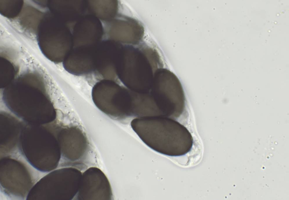 Der Ascus: 210-230 x 34-43µ, 16 sporig