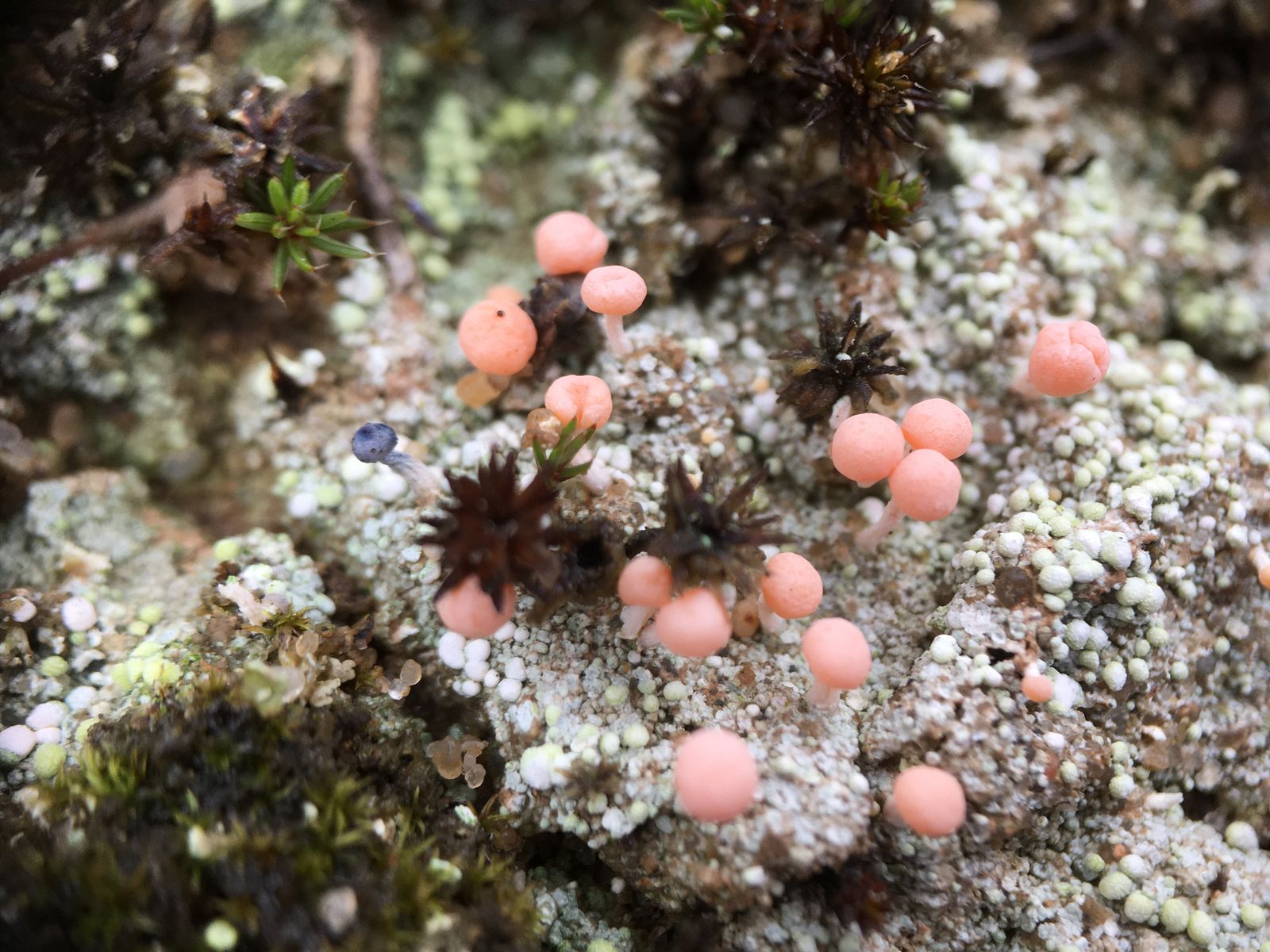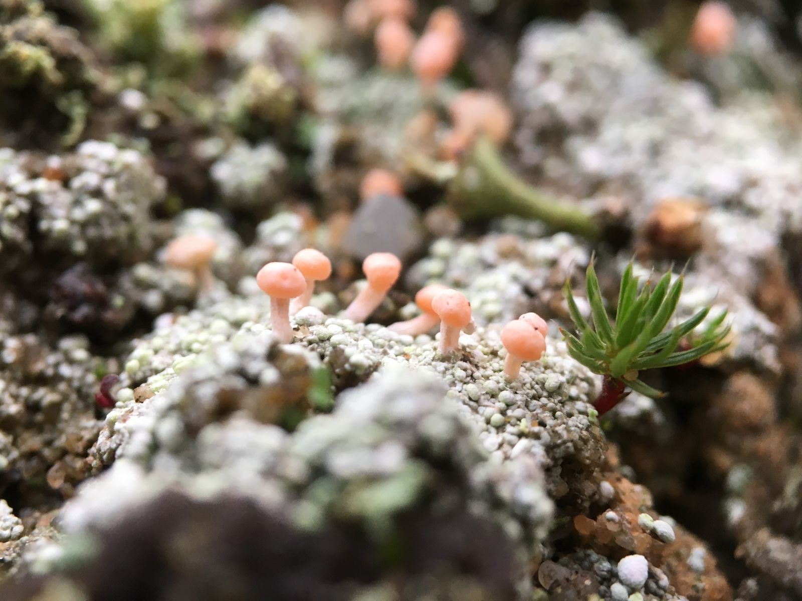 seitdem ich letztes Jahr von der Rosa Köpfchenflechte las wollte ich sie unbedingt finden... und dann müsste ich auch noch das Glück haben sie zur richtigen Zeit in "Blüte" zu erwischen, denn sonst sieht sie in etwa so spektakulär aus wie der alte Wasserkocher von innen. Das ist mir nun unter einer Hochspannungstrasse tatsächlich gelungen.