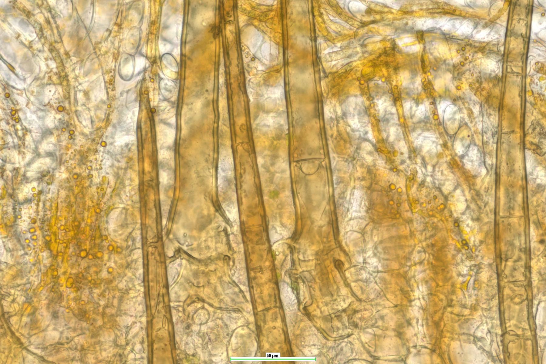 Haare: bis 500um lang, septiert und dickwandig, einfach bzw. manchmal zweifach wurzelnd