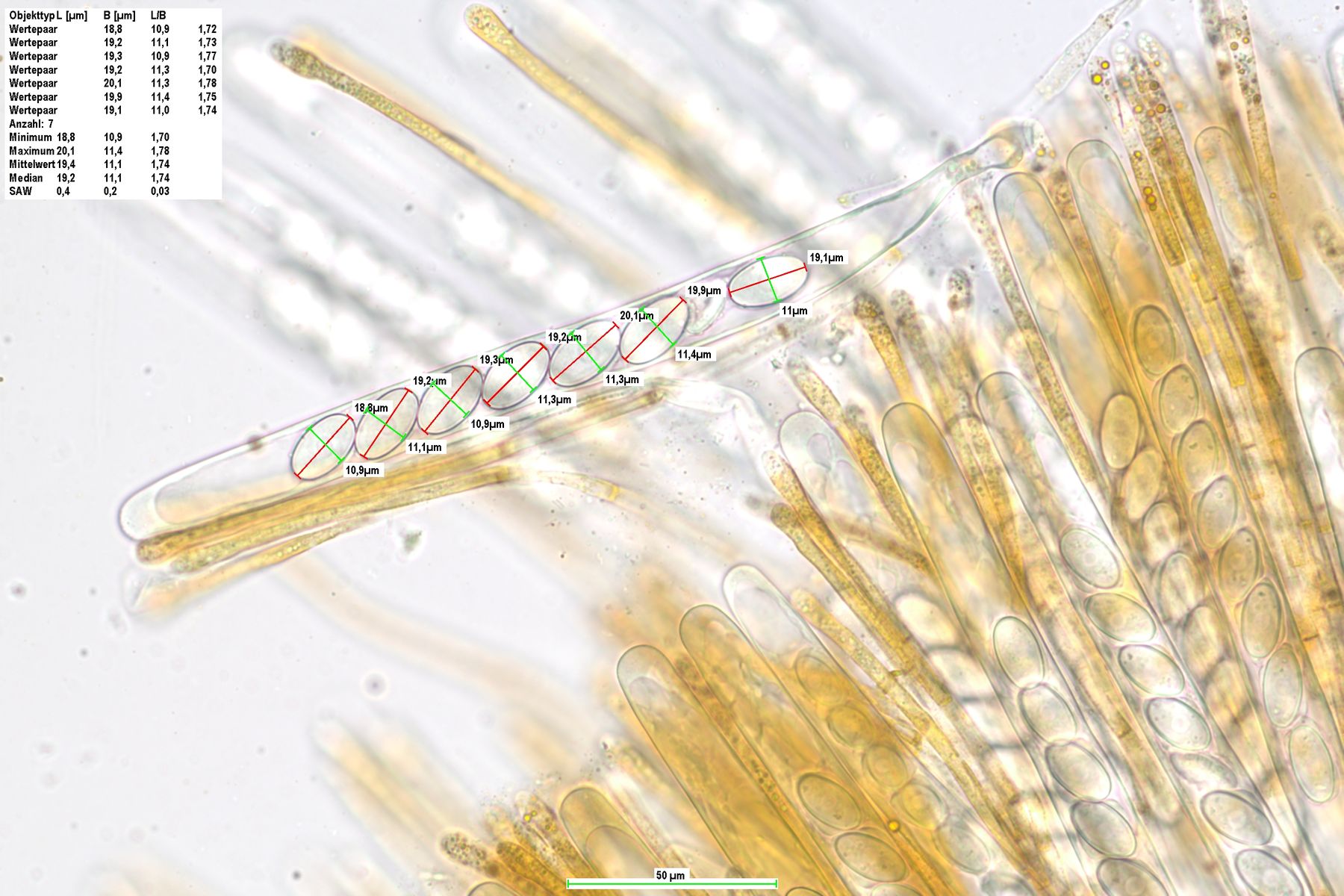 Sporen : 17.5 - 20,5 x 9-11 , ein Ornament konnte ich keines entdecken