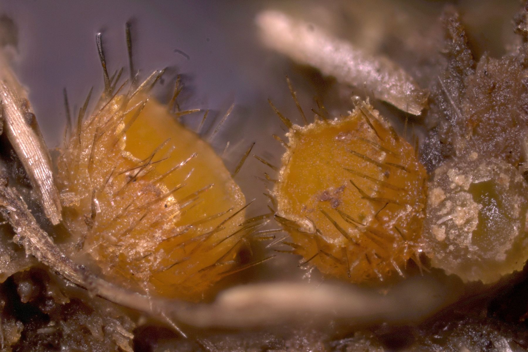 Haare: bis 500um lang, septiert und dickwandig, einfach bzw. manchmal zweifach wurzelnd