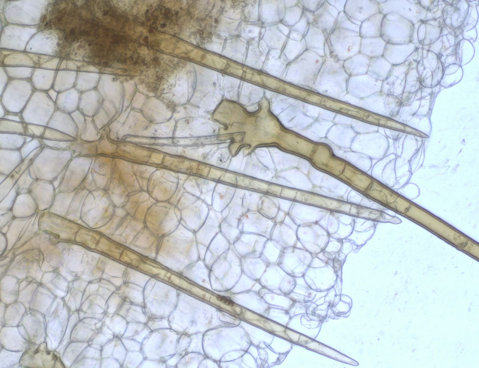 Immerhin wissen wir jetzt, dass die Randhaare deutlich mehrfach wurzelnd sein können und es zumindest zweispitzige Haare gibt, die Vorform der Sternenhaare.