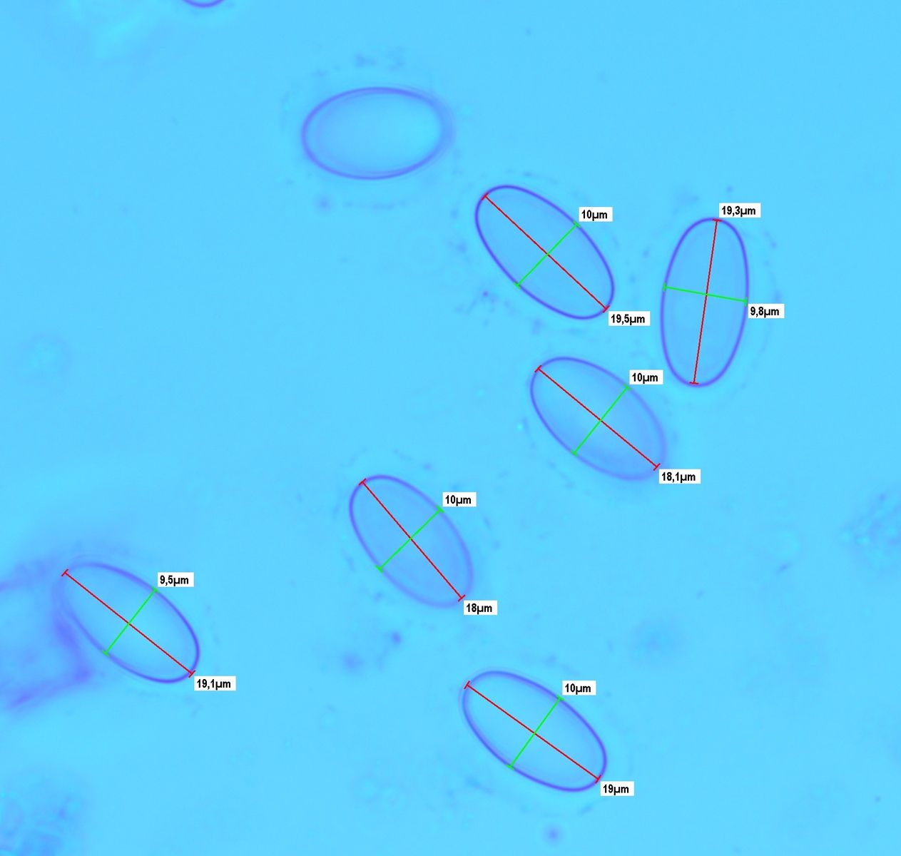 Sporen : 17.5 - 20,5 x 9-11 , ein Ornament konnte ich keines entdecken