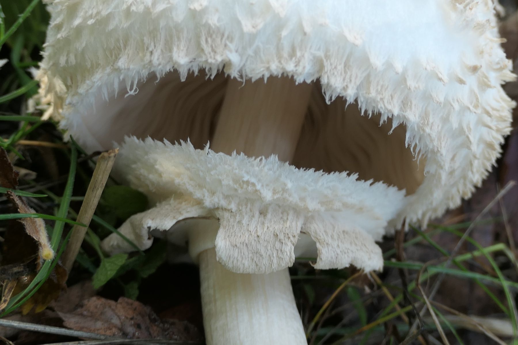 Die Lamellen sind weißlich und frei.