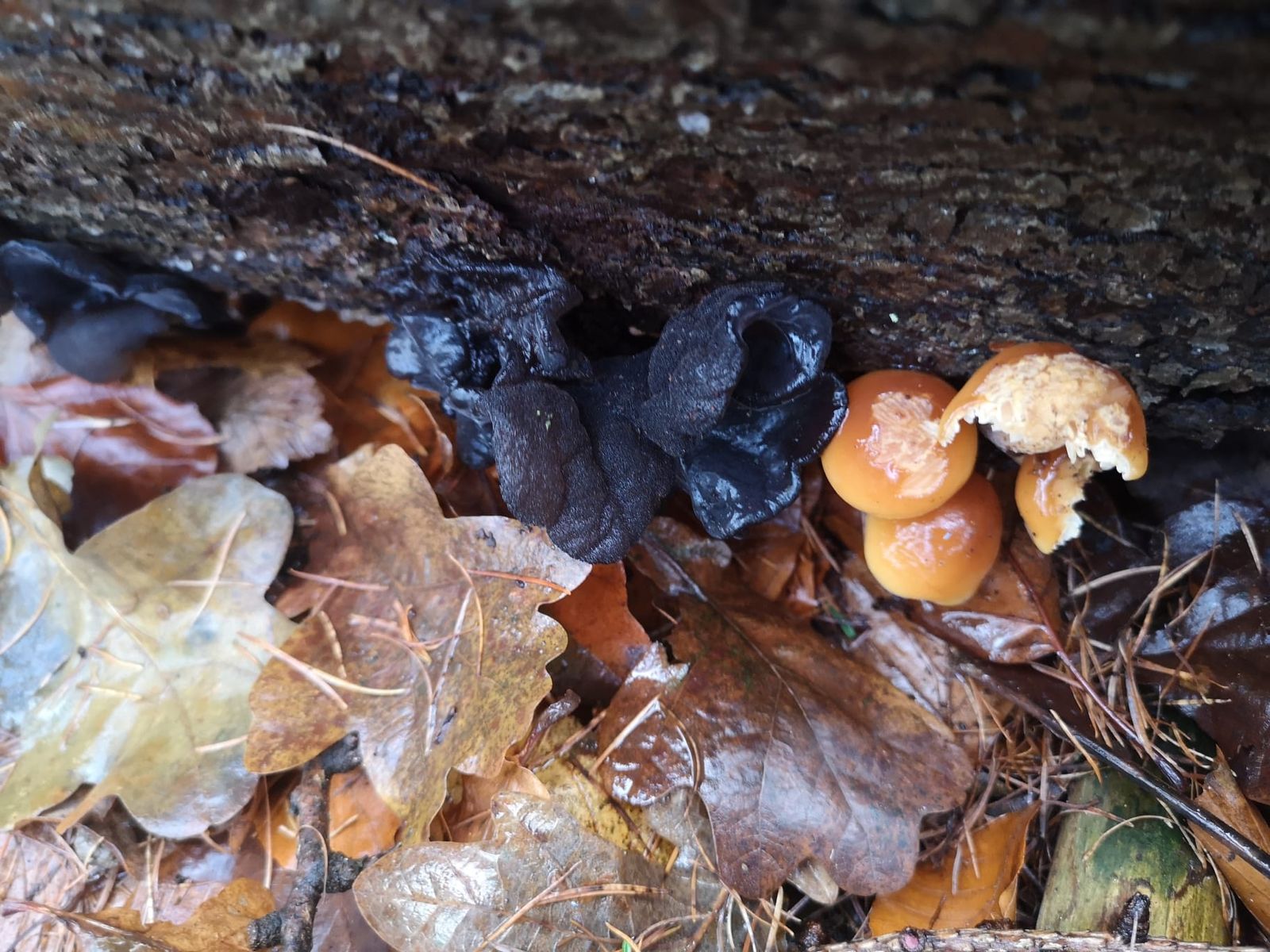 Samtfussrüblinge hab ich auch weiterhin am meiner mir einzigen bekannten Stelle. Diese hier haben irgendeinen schwarzen Partner. fühlte sich an wie Judasohr, ganz wabbelig.
