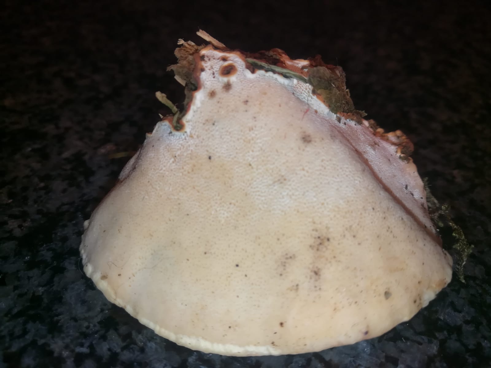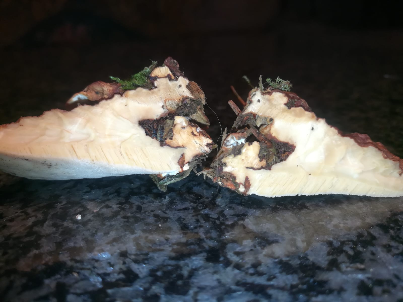 Bei dem vermuteten "Reishi" könnte ich mir bei der knubbeligen Hutoberseite auch einen Wurzelschwamm (Heterobasidion spec.) vorstellen. Davon müsste man aber auch die Unterseite sowie ein Schnittbild sehen.