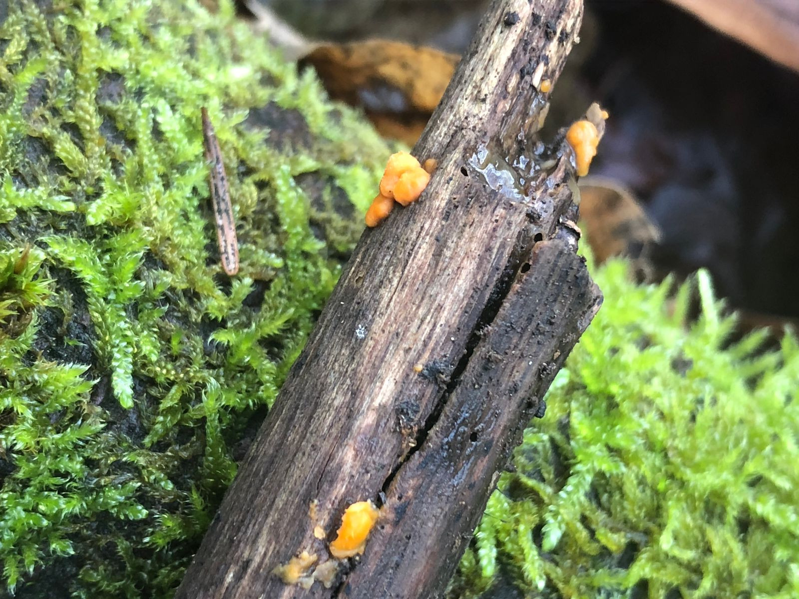 Heute gab es einen kleinen Pilzspaziergang im Bannwald. Zuerst gab es kleine weiche orange Pilze (kein Scleimpilz), dann ging es weiter am Wegrand eine Phlebia mit orange und gelbfarben und violtten Mollisias an derselben Fichte. Von den violetten Mollisias war nur 1 reif. und zum Schluss kontte ich noch mit einem gelben Schleimpilz abschließen.