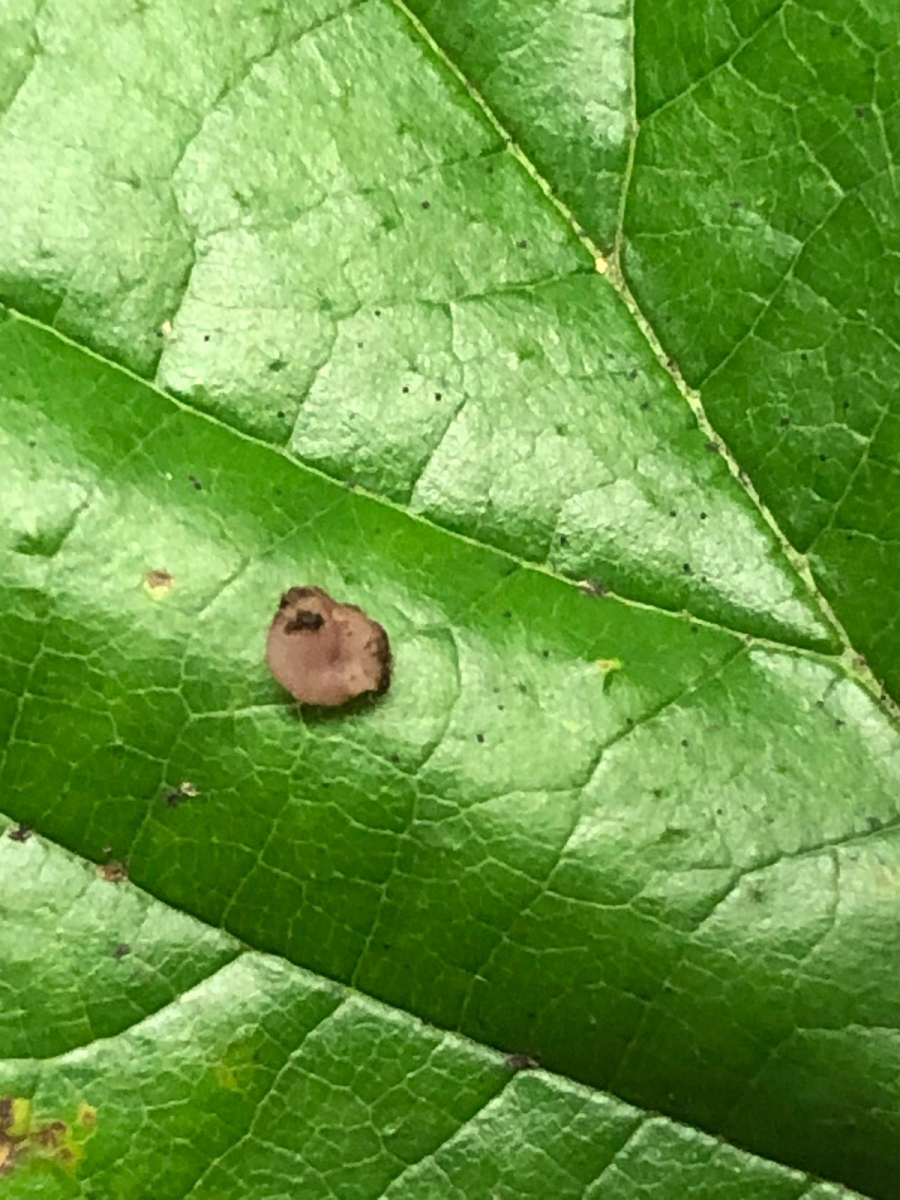 Violette Mollisia (Gestelltes Foto auf Brombeerblatt