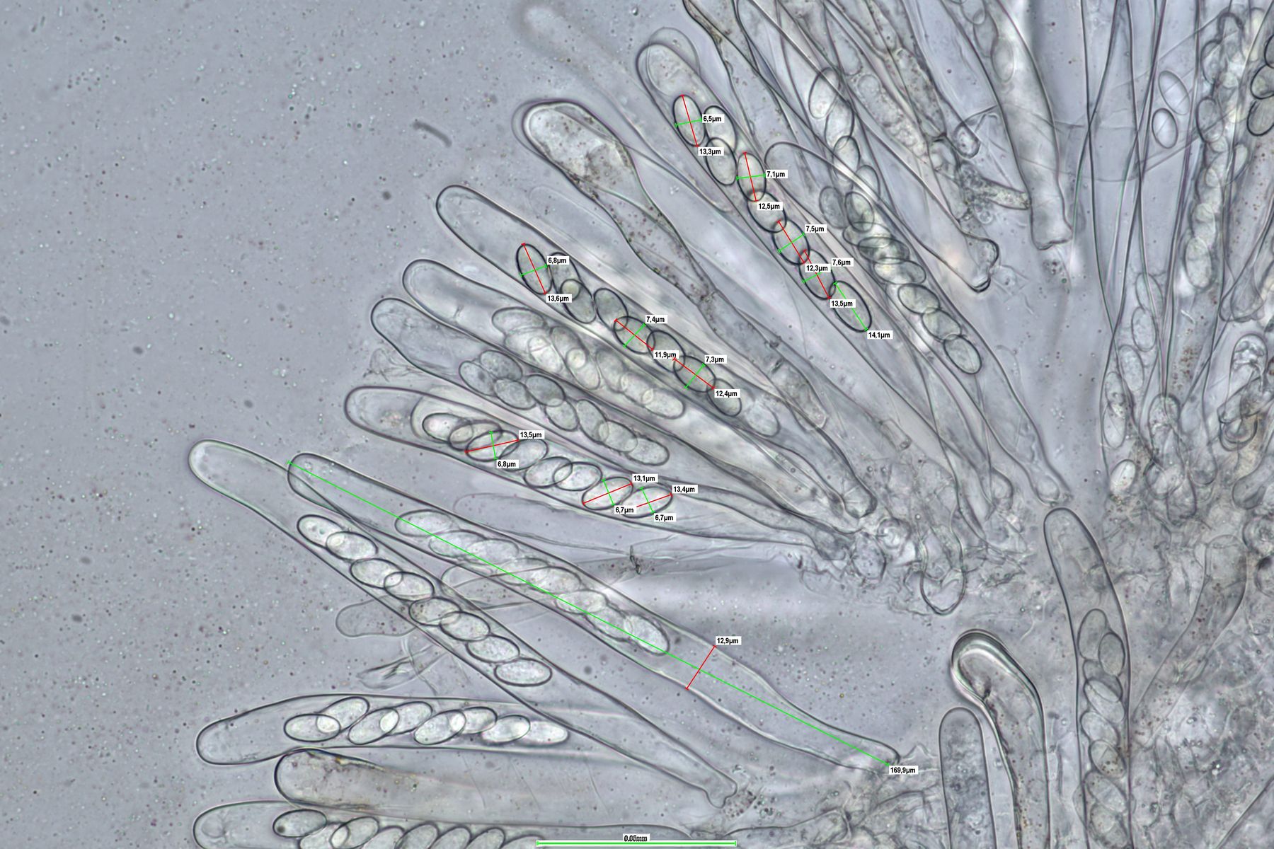 Asci: uniserikat, zylindrisch 140-160 x 12-14 ( siehe auch Bilder)