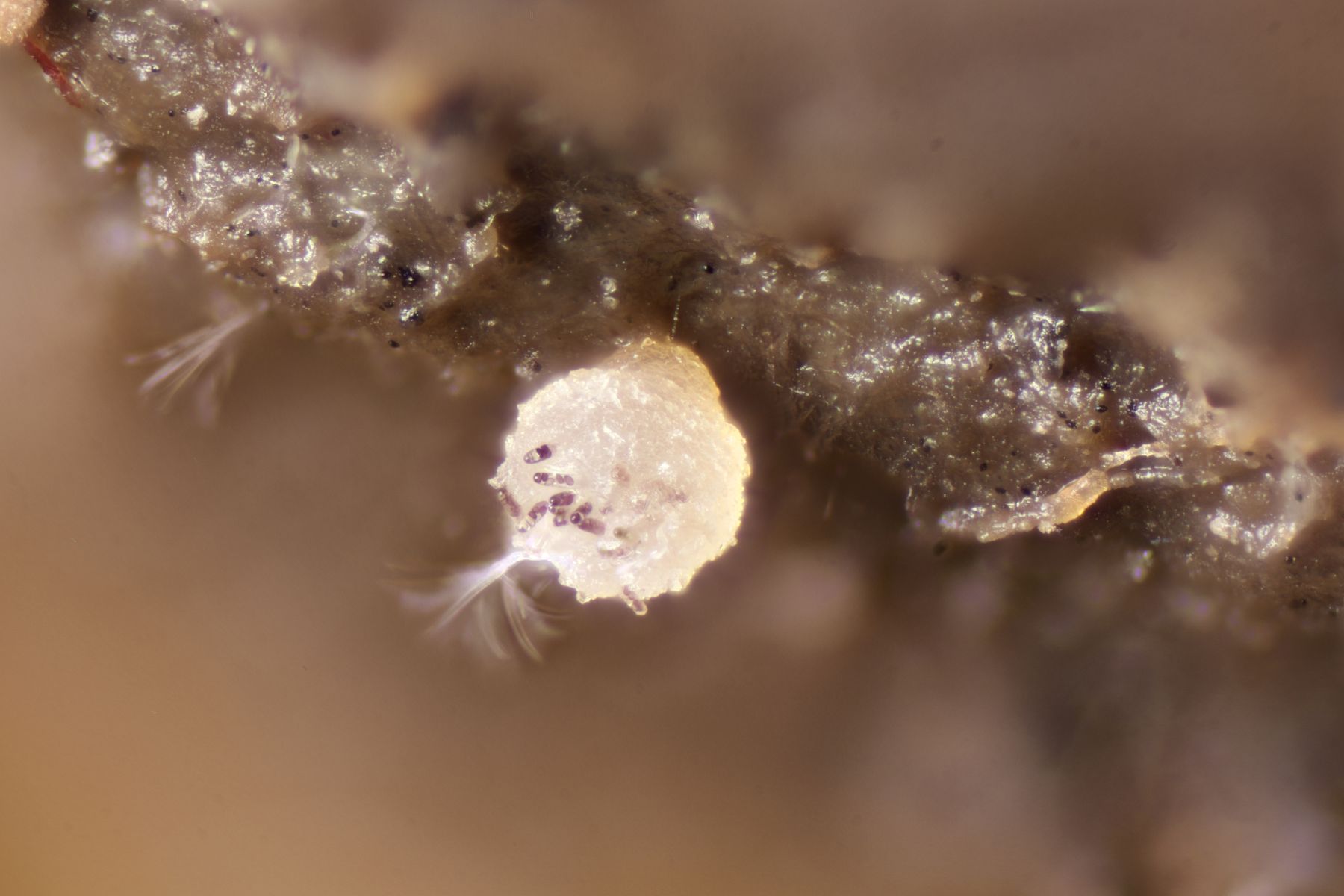 es geht langsam aber stetig weiter auf dem Walsumer Schaf. Zwar tummelt sich da viel Schimmel und noch mehr Nematoden, die dann auch die Makrofotos unschön dekorieren, aber ich glaube, daß ich dennoch einen schönen Fund machen konnte. Ein Ascobolus mit warzigen Sporen, die 17.7-23.1 µm x 10.0-12.2 µm messen. Die Fruchtkörper sind weißlich, so daß ich hier insgesamt bei Ascobolus hawaiiensis lande, was ja ein eher seltener Fund wäre.