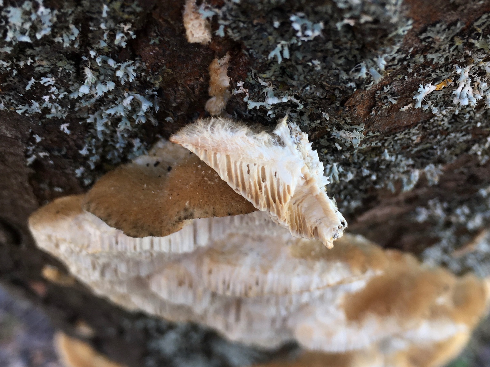 Trametes trogii = Blasse Borstentramete ohne KOH-Reaktion (-> gelborange).