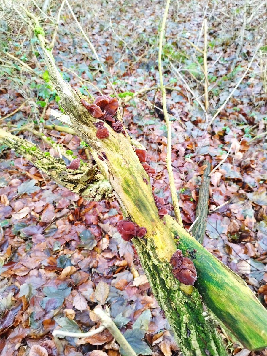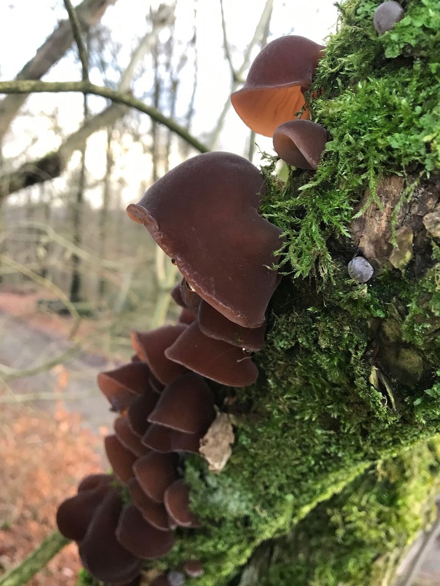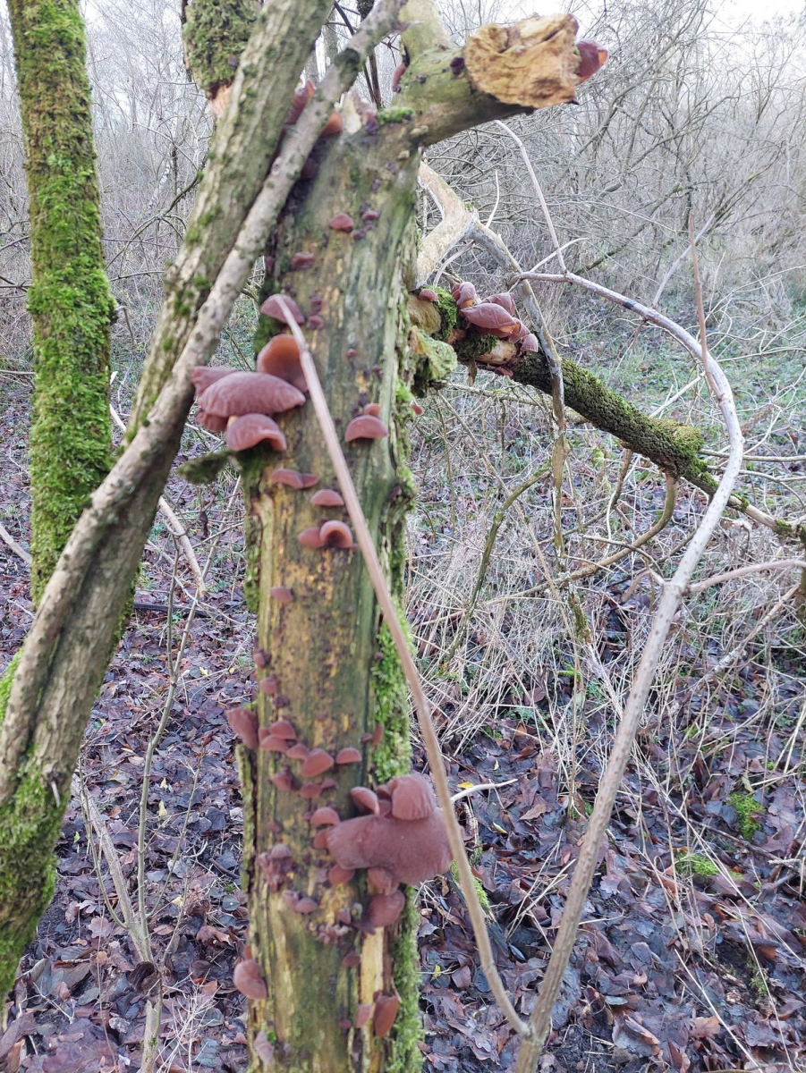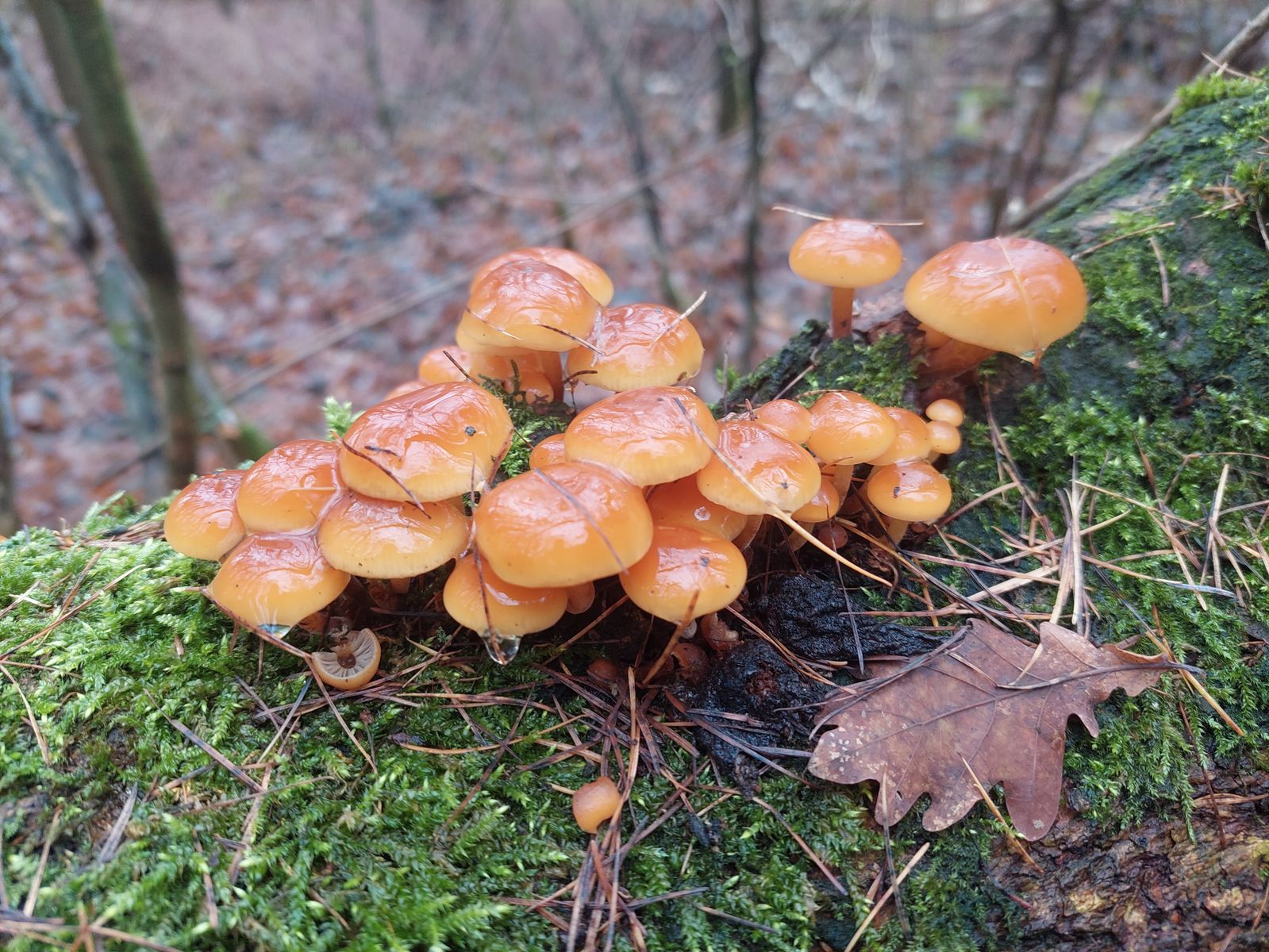 Hallo, also Winterpolzmäßig kann ich zur Zeit aus dem Vollen schöpfen. Judasohren überall, Samtfußrüblinge und auch Austernseitlinge. Die brauchen noch ein paar Tage, aber zum Wochenende werden sie hoffentlich Erntereif sein. Ich habe eine liegende Buche entdeckt, wo über mehrere Meter kleine Fruchtkörper , fast alle gleich groß (oder noch klein) wachsen. Aber auch andere Farbtupfer wie Fleischrote Gallertbecher, Goldgelbe Zitterlinge oder Winterstielporlinge sind zu finden. Ich muss noch mal los, Fotos machen.