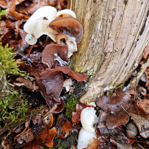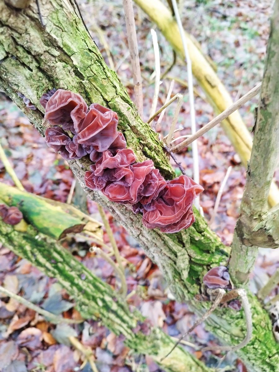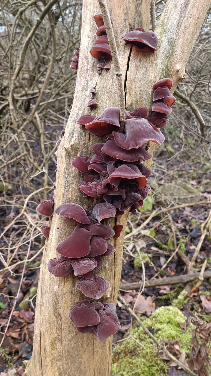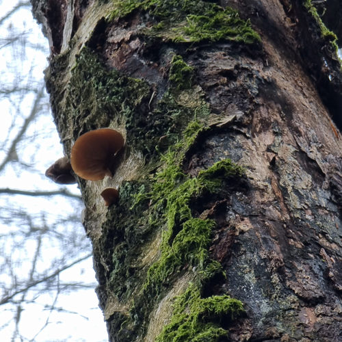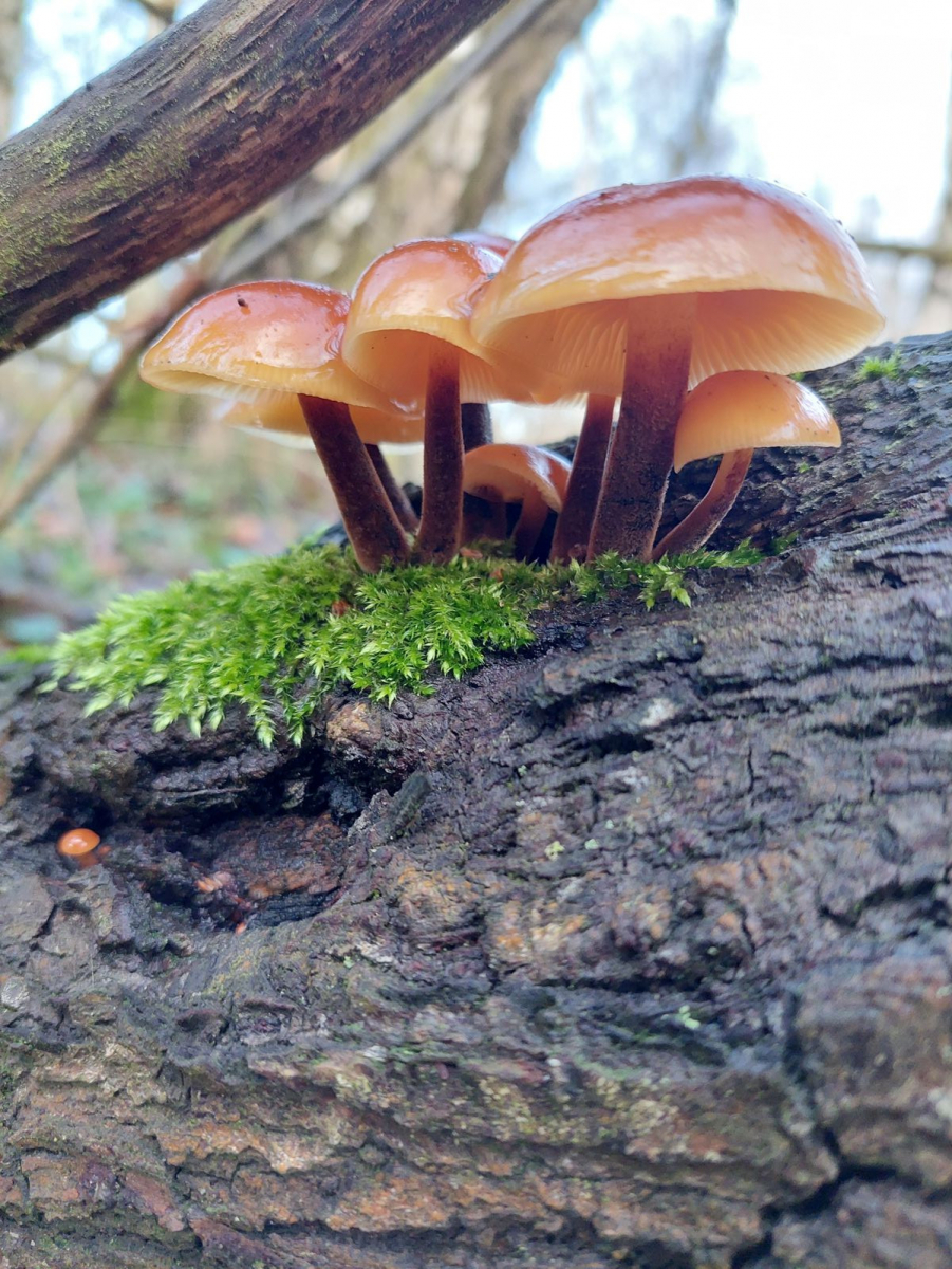 Hallo, also Winterpolzmäßig kann ich zur Zeit aus dem Vollen schöpfen. Judasohren überall, Samtfußrüblinge und auch Austernseitlinge. Die brauchen noch ein paar Tage, aber zum Wochenende werden sie hoffentlich Erntereif sein. Ich habe eine liegende Buche entdeckt, wo über mehrere Meter kleine Fruchtkörper , fast alle gleich groß (oder noch klein) wachsen. Aber auch andere Farbtupfer wie Fleischrote Gallertbecher, Goldgelbe Zitterlinge oder Winterstielporlinge sind zu finden. Ich muss noch mal los, Fotos machen.
