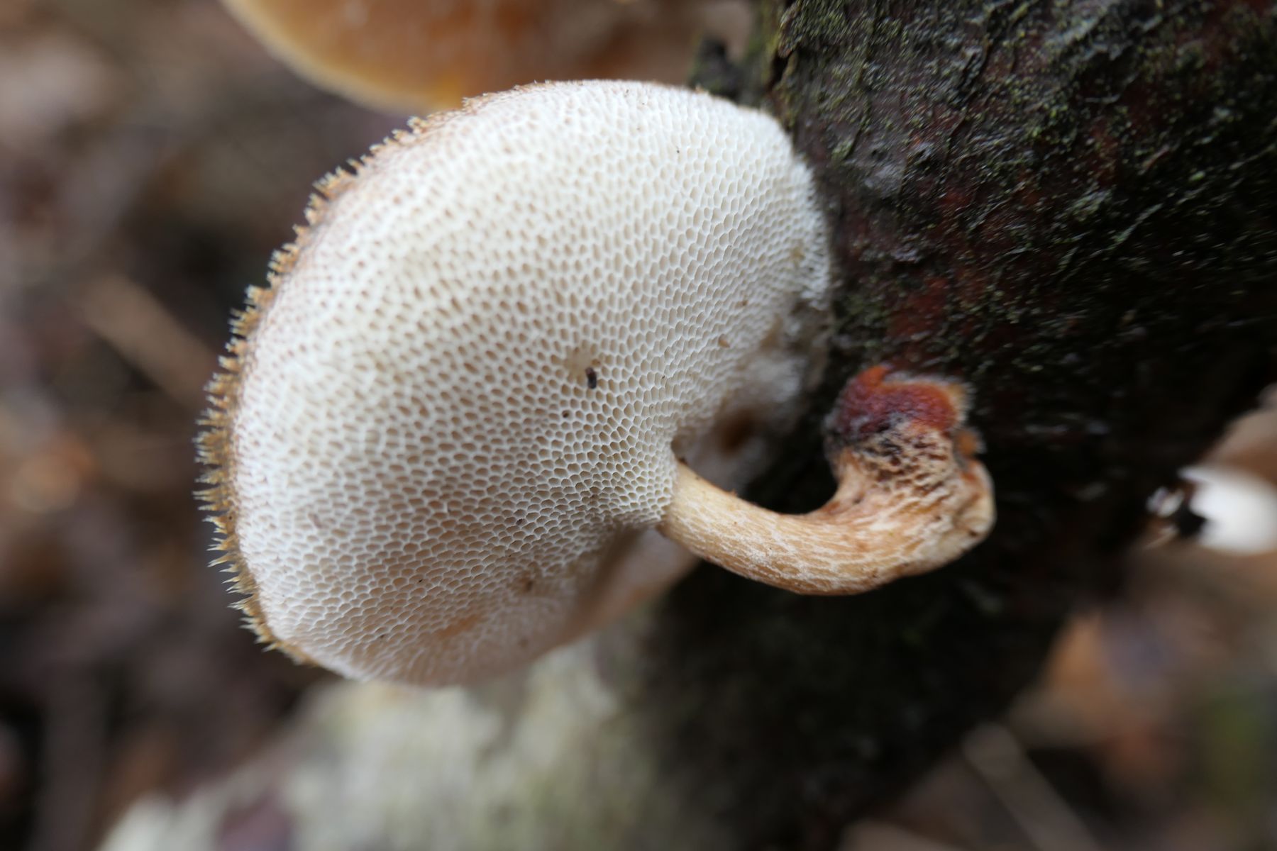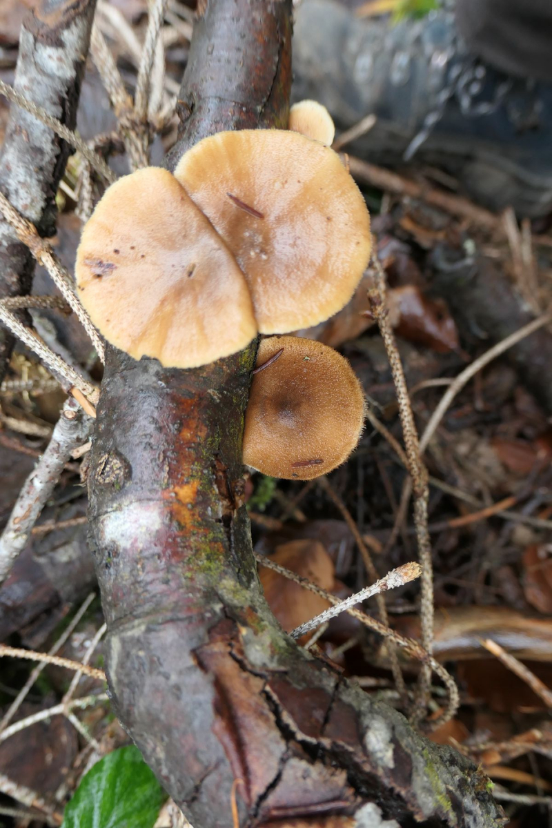 29.12.2022 Jurasüdfuss ca 650 m, hier auf Nadelholz (Tanne wahrscheinlich) gefunden - gemäss BLV Pilzführer (Polyporus brumalis) selten auch auf Nadelholz,