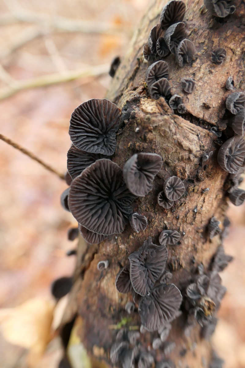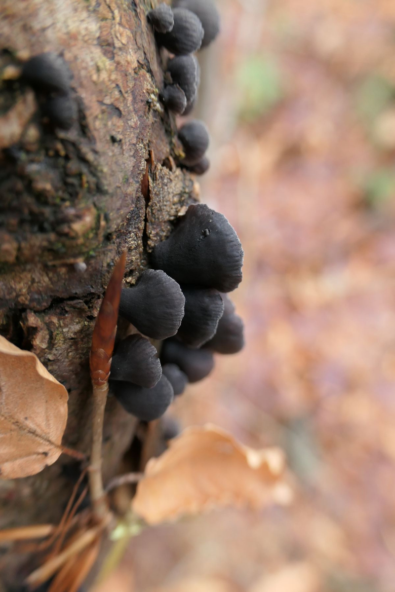 Heutiger Fund ebenfalls am Jurasüdfuss ca 650 m an totem Nadelholzast (wahrscheinlich Fichte) ganze Kolonien von schwarzen 'Stummelfüsschen' - zur Abschätzung der Grösse Einblendung einer Buchenknospe (Bild1),