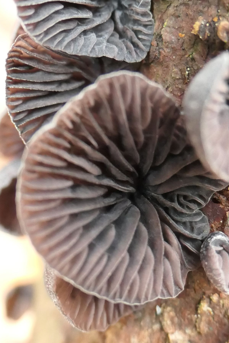 werde in meiner beschränkten Literatur bei den Gattungen Crepidotus, Hoehenbuehelia nicht fündig...