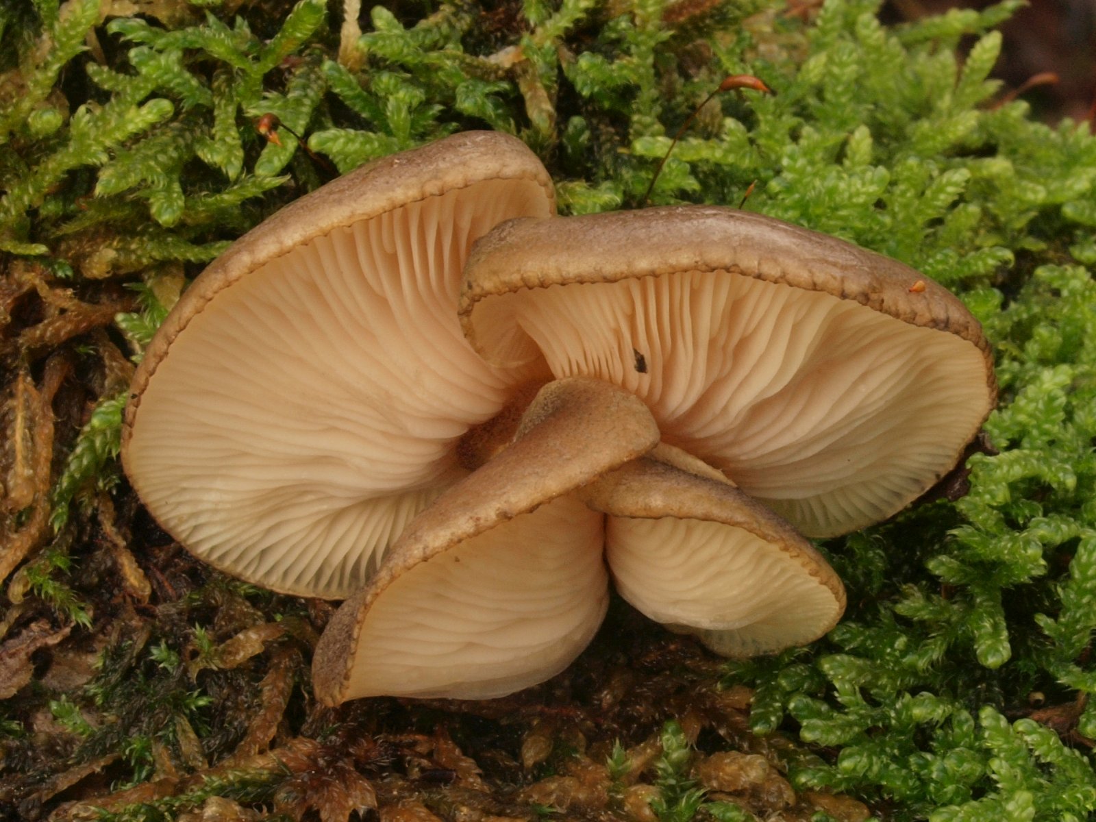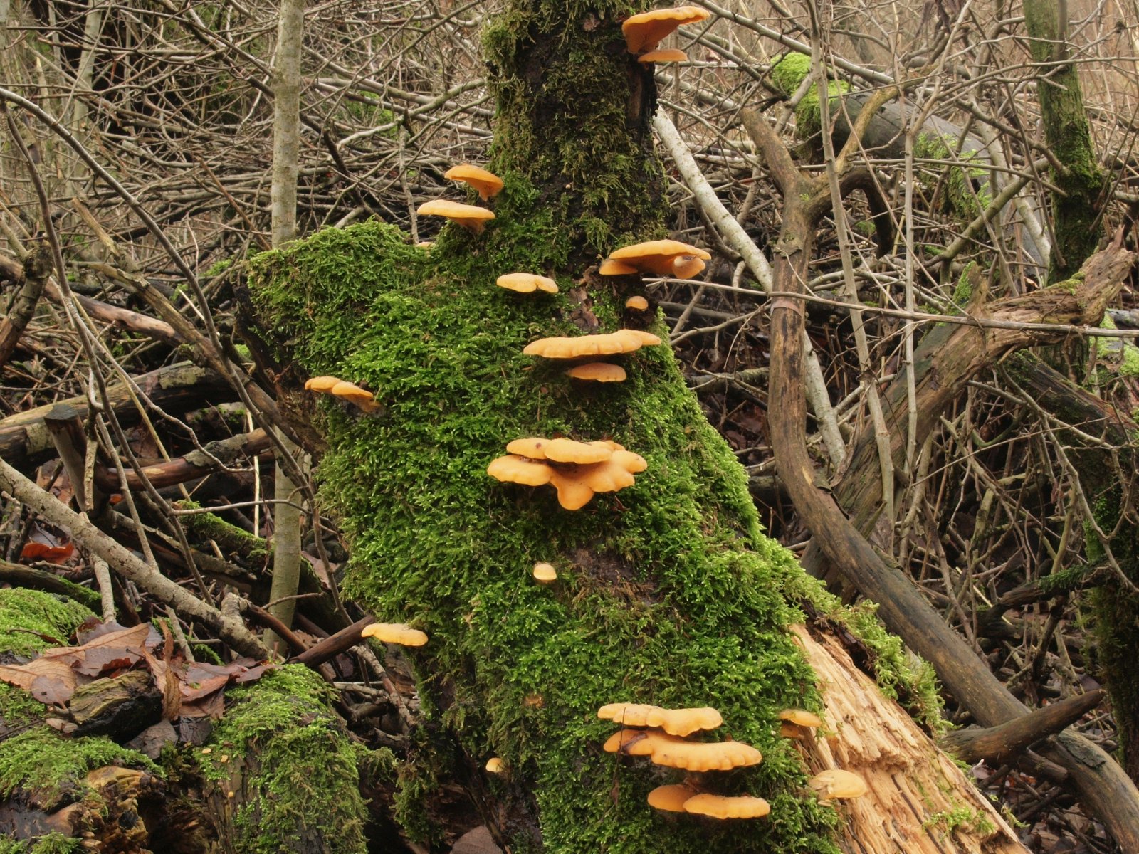 Zwar kein Stiel zu sehen aber es ist trotzdem der Gelbstielige Muschelseitling (Sarcomyxa serotina)