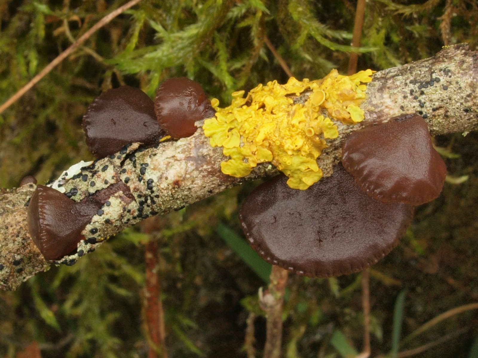 Besonders gefreut hat uns der Fund des Weiden-Büschelbecherlings (Encoelia fimbriata) auf einem am Boden liegenden Zweig