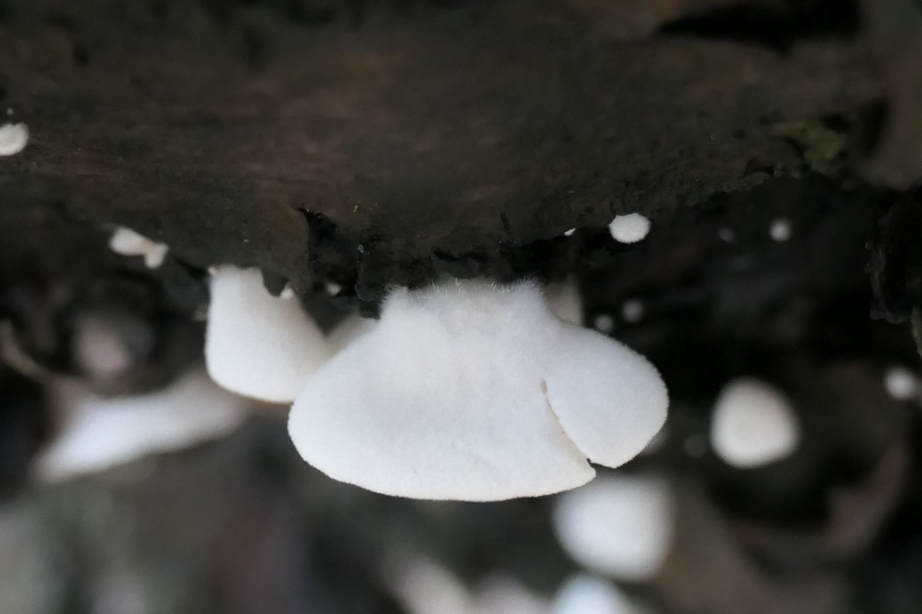 weiße Crepidotusse in so einer Optik gibt es einige. Da muss wirklich das Mikro her. Eine sehr häufige Option wäre C. cesatii.