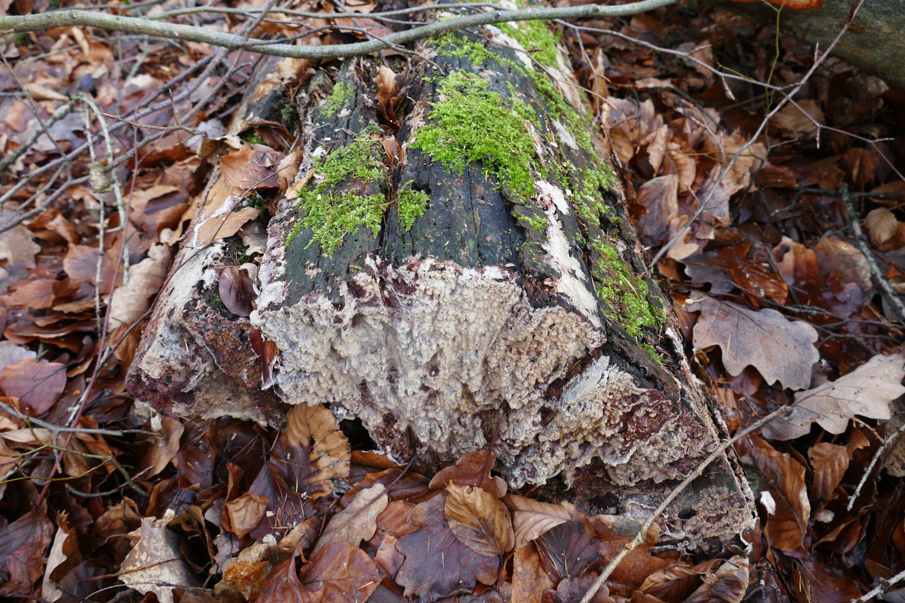 Bild 1 Leigender, morscher Stamm mit Fruchtförperbildung