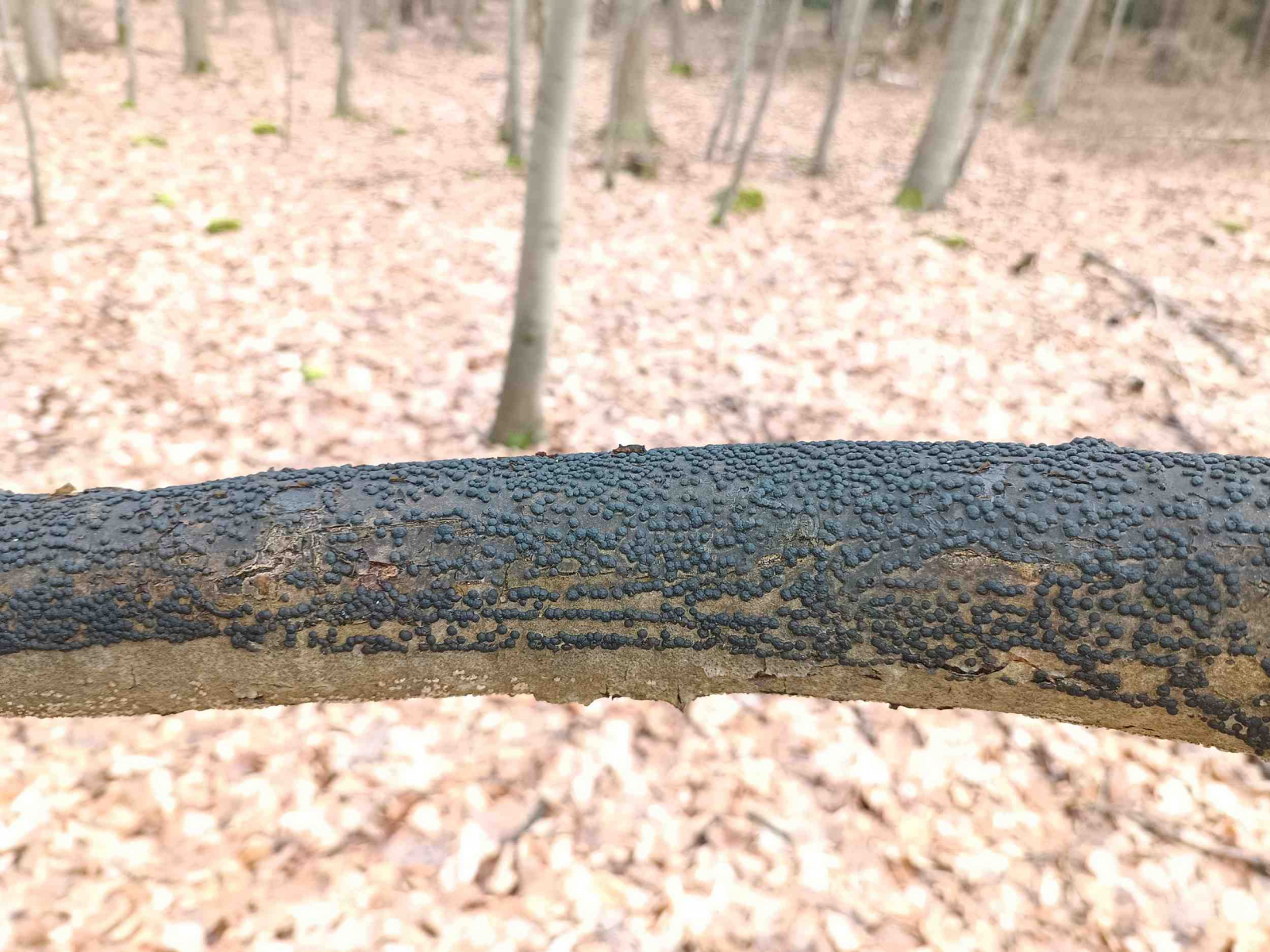 Was ich fand war ein schöne Gruppe Kohlenbeeren, dazu wieder reichlich Strobilurus esculentus (FiZaRü) und Mycena strobilicola (FiZaHe).