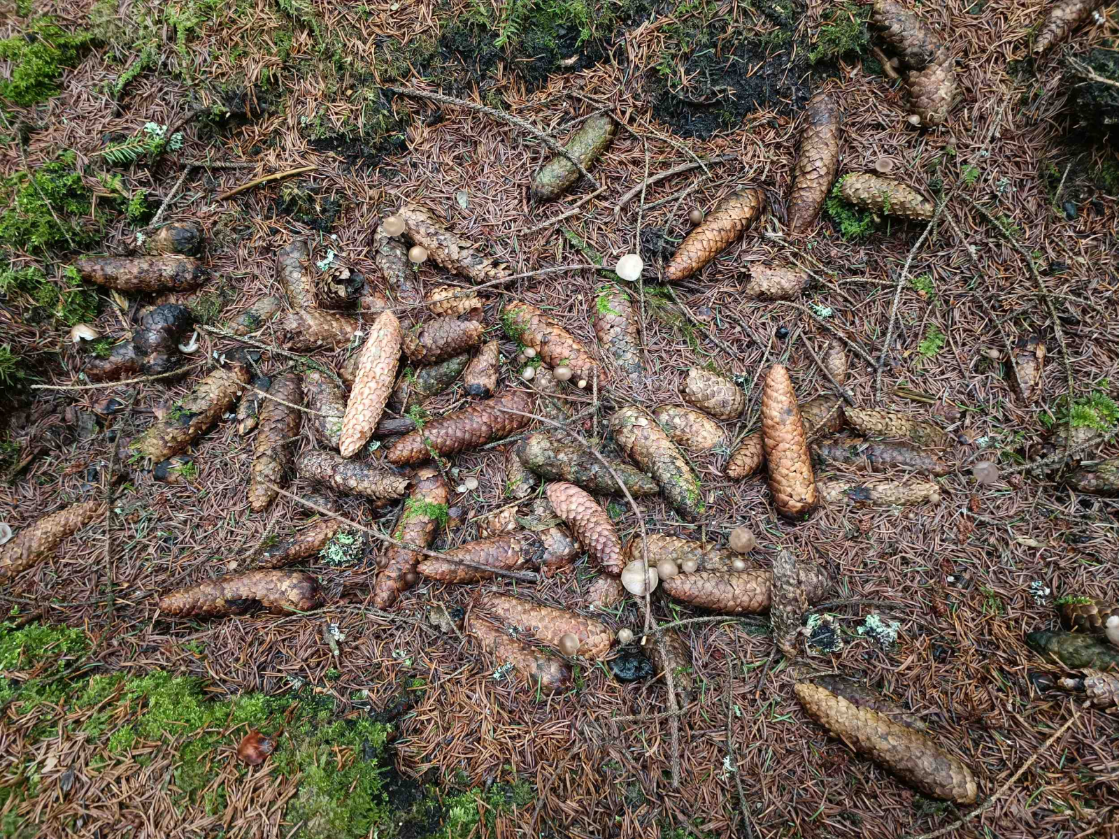 Dafür gibt es Mengen an Mycena strobilicola (FiZaHe) zu sehen.