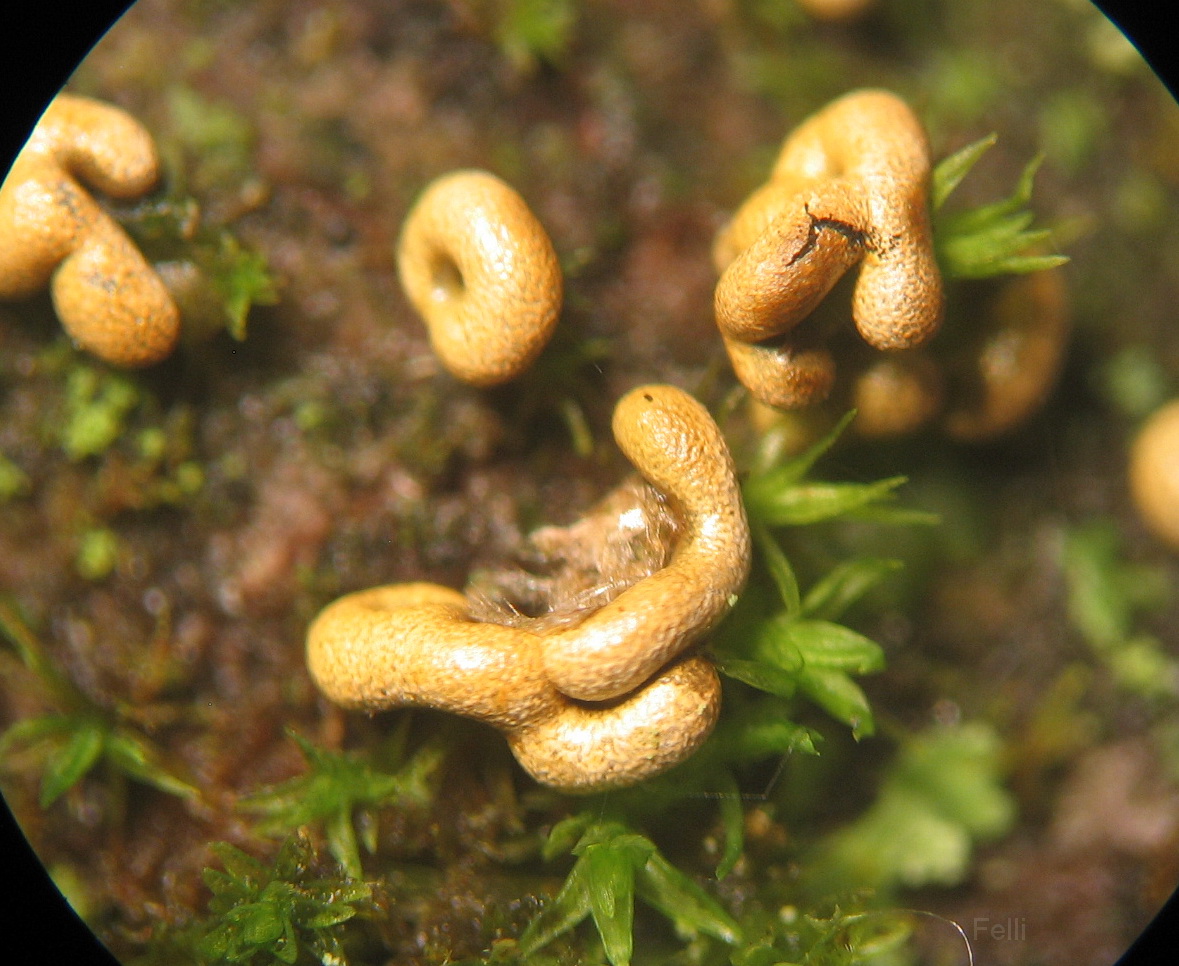 Die Wülste sind gebogen gewunden, 3-8 mm lang, gelblich,und die Außenhülle uneben-eingedellt.