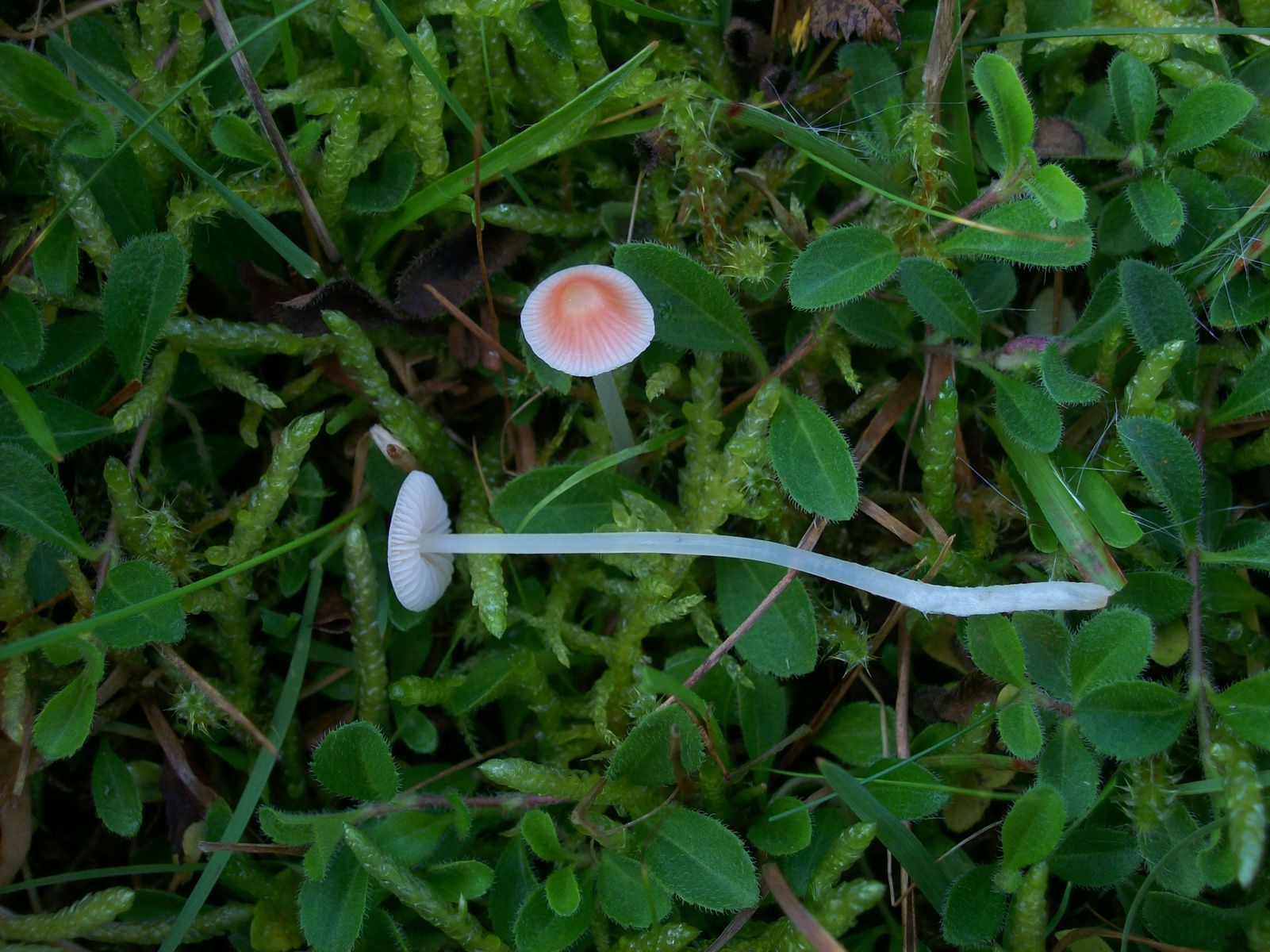Die Frk. sind in diesem Fall klein, sowohl vom Stiel als auch Hut her, wogegen ein anderer Fund vom Botanischen Garten Bochum (Mycena flavoalba) größer ist.