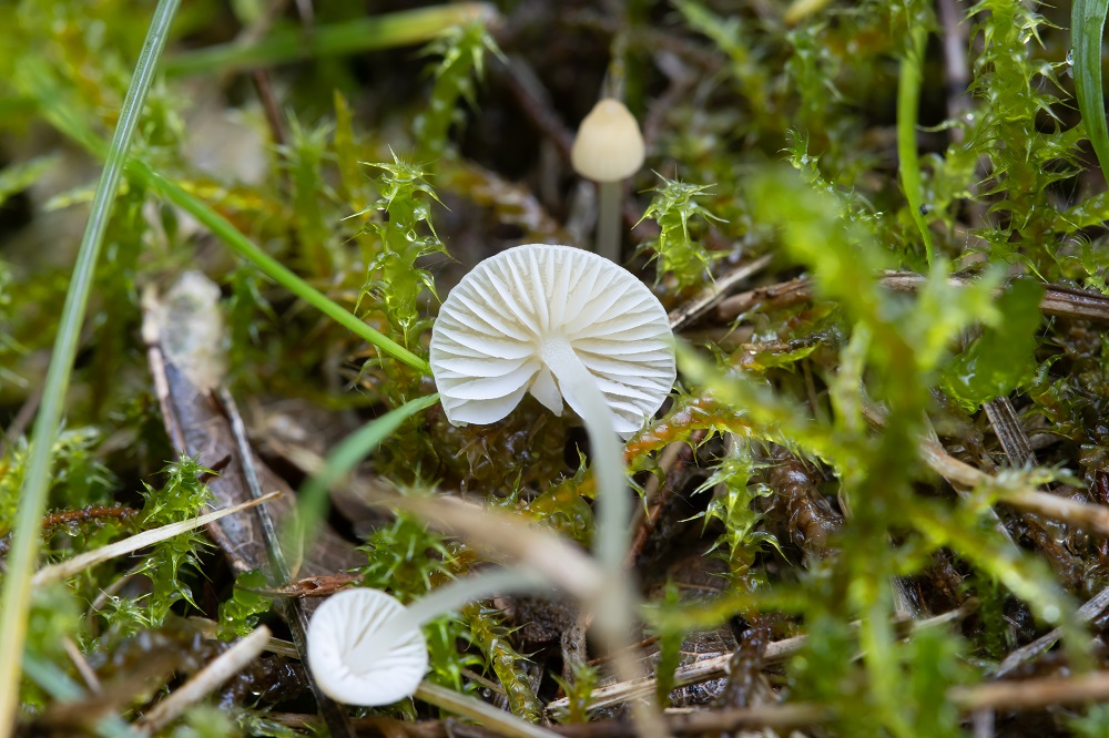 Die Frk. sind in diesem Fall klein, sowohl vom Stiel als auch Hut her, wogegen ein anderer Fund vom Botanischen Garten Bochum (Mycena flavoalba) größer ist.