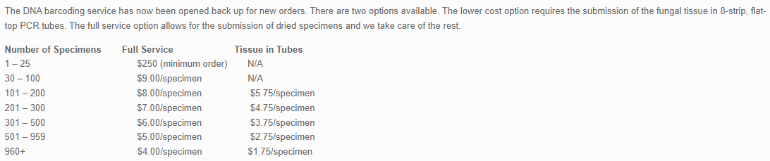 3. Für DGfM Mitglieder jährliche Kontingente an Sequenzen anbieten (Selbstkostenpreis oder eben gegen Spende um Schulungen/Equipment/Lagerung zu refinanzieren)