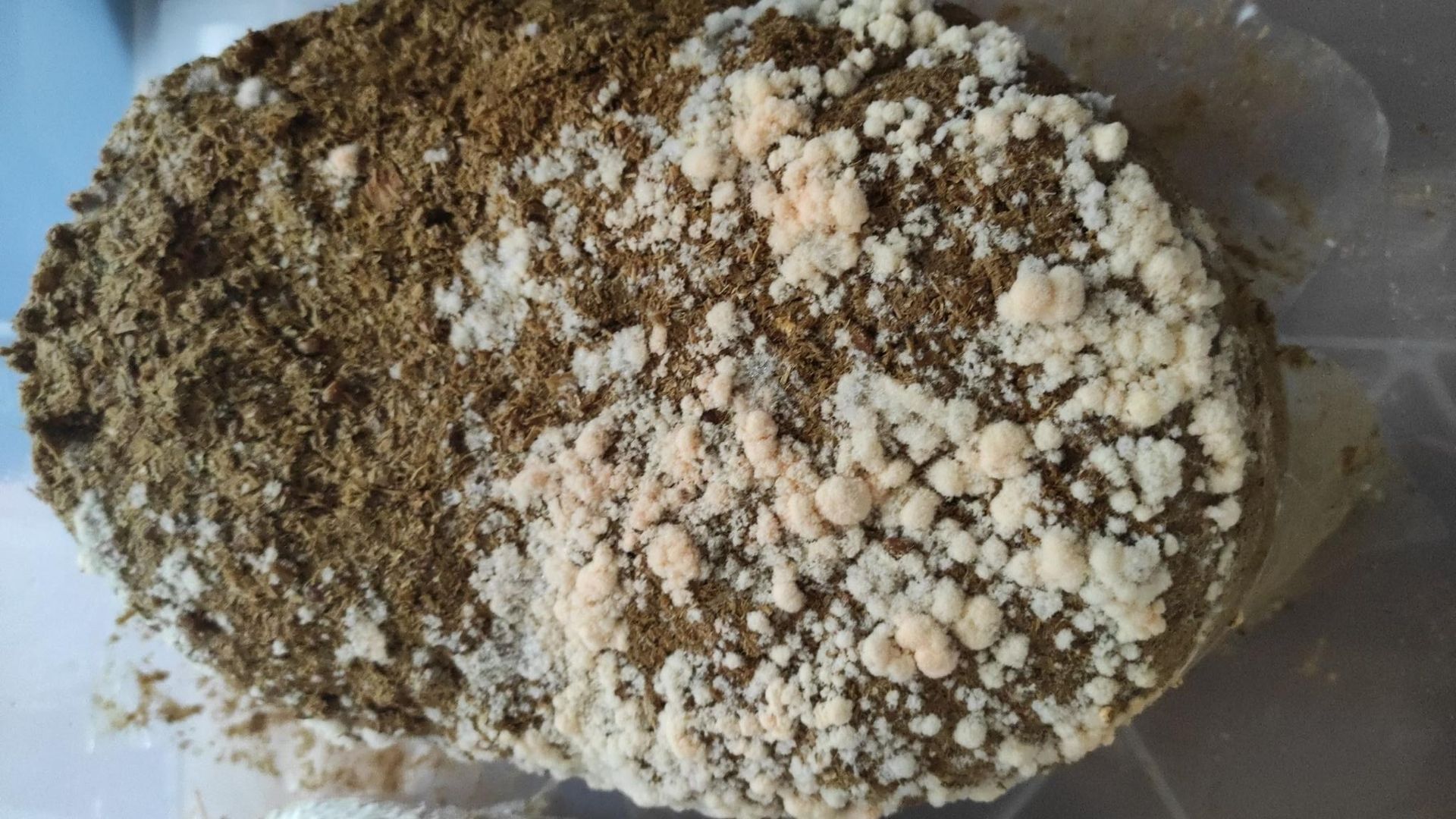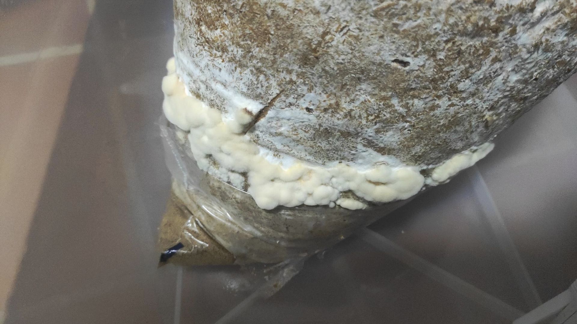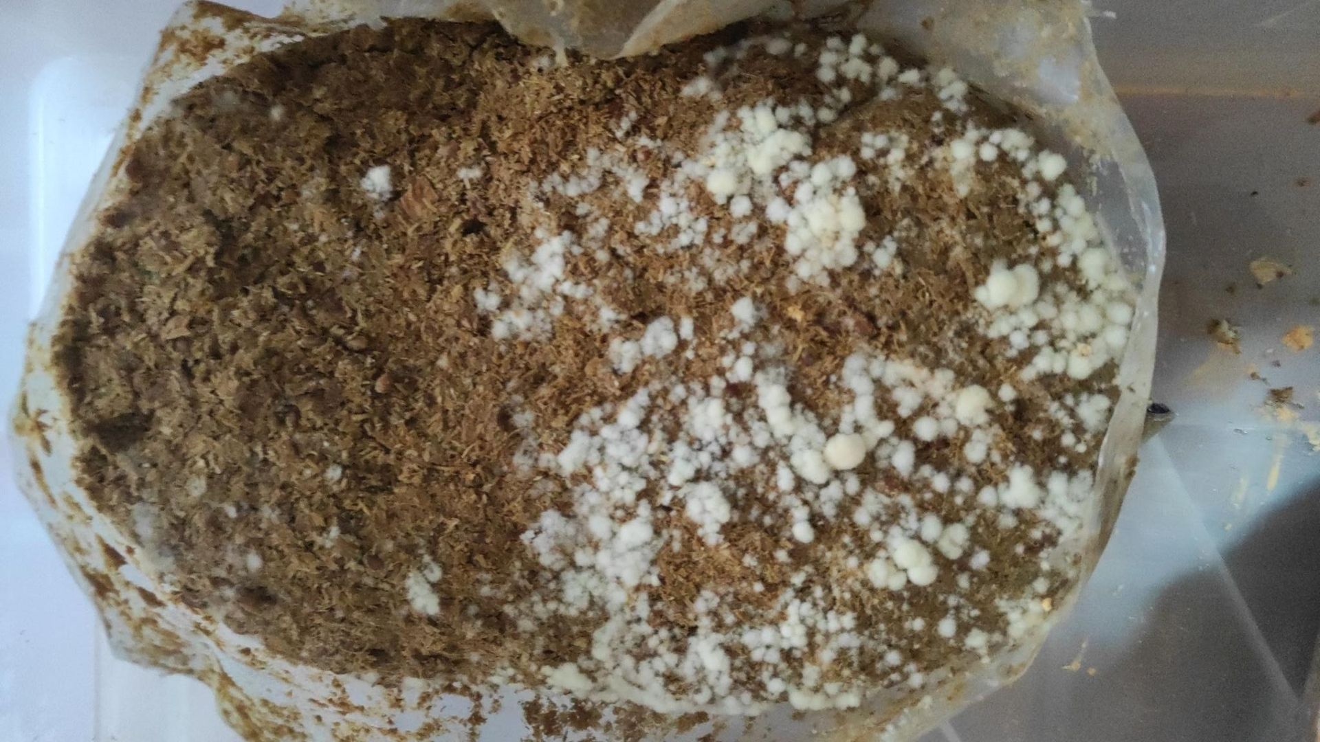 • Das ist definitiv was bakterielles. Anzeichen davon hab ich schon bei der Durchwachsphase gesehen, aber die Auster hat das überwuchert. Ist halt Auster. Das Problem ist, auch wenn man es nicht mehr direkt sieht, ist es halt oft noch da. Deshalb auch mein obiger Kommentar bzgl. der Notwendigkeit von 100% kontifreier Körnerbrut. Es gibt nichts ärgerlicheres als erst während der Fruchtung festzustellen, das das alles nichts wird wegen Kontis, die man eh schon vorher gesehen hat. Man ist dann jeden Schritt trotzdem weiter gegangen, weil die Chanche besteht das das Mycelm das abwehrt, aber ganz ehrlich... nee. Das ist im besten Fall ne 1/3 Chance, für das Mycel zu gewinnen. Bis dahin hat man viel Zeit, Platz und auch Wartezeit investiert.