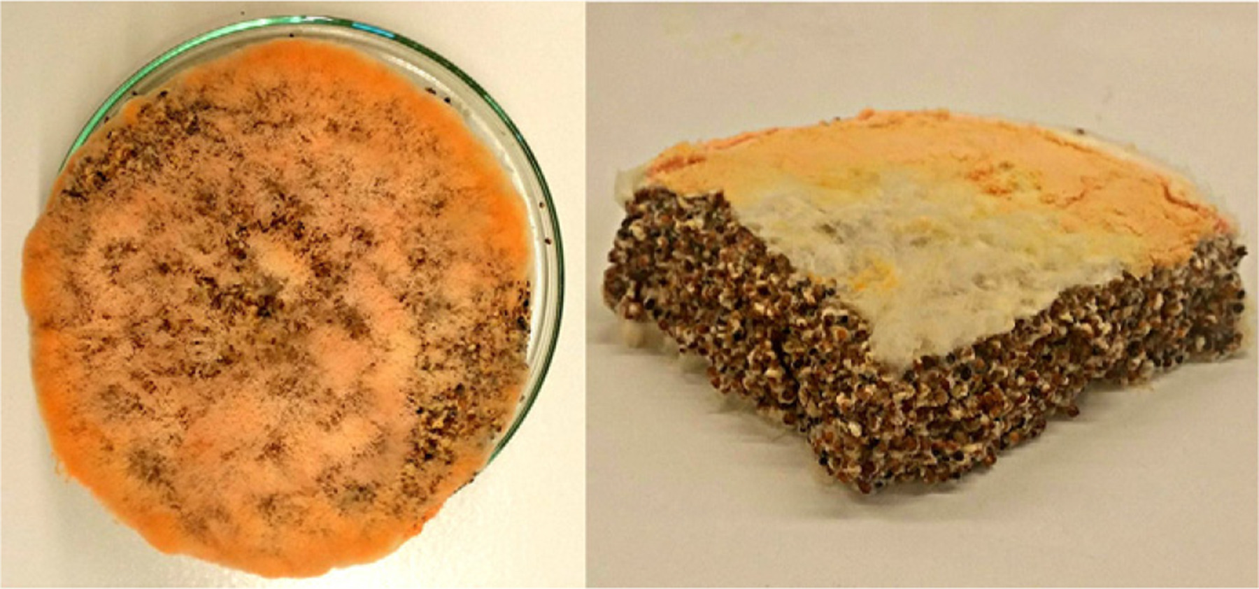 • Die Frage, um welchen Pilz es sich handelt, scheint nun geklärt zu sein. Es ist tatsächlich eine unerwünschte Form des Bäckerschimmels. Hauptgruppe ist der Neurospora. Es könnte nun der N. crassa, der N. intermedia oder der N. sitophila sein. Beide letzteren finden in der asiatischen Küche gezielte Anwendung zur Fermentation. Wen es interessiert, kann sich auf You Tube ein Video zur Arbeit mit dem Pilz ansehen: