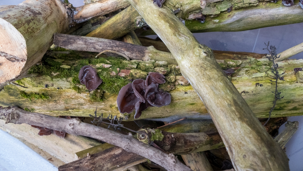 Spannend ist übrigens auch ein weiteres Experiment. Ich hatte im November im Wald Holunderholz gesammelt, an dem ich kleine Wolkenohren gesehen hatte, und das abgebrochen am Boden lag. Habe es gut angefeuchtet und in eine große Plasitikiste auf die Terrasse gestellt. Die Wolkenohren sind gut gewachsen und einzelne kleine kamen noch nach. Eine Vermehrung in Nährlösung gelang leider nicht. Das Wolkenohr ist sehr dünn und da ist es extrem schwierig, mit dem Skalpell wirklich 100% steril etwas aus dem Inneren zu entnehmen. Auch fand ich das Wolkenohr bislang außer auf altem Holunder nur einmal auf der Sägefläche einer gefällten Buche. Es scheint spezielle Wachstumbedingungen zu benötigen.