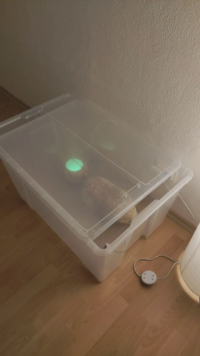 Habe Deinen neuen Beitrag erst heute gelesen und gestern Abend zunächst stabil die Luftfeuchtigkeit auf 95-96% gesetzt und dazu den Ultraschallvernebler benutzt. Nach der Arbeit leihweise mit einem transportablem Sauerstoffgerät 0,25L Sauerstoff/Minute über Nacht in die dann geschlossene Box unten eingeleitet. Damit konnte gleichzeitig Luft oben durch den nicht dichten Deckel entweichen und so verstärkt Kohlendioxid abgeführt werden. Ist keine Dauerlösung, sondern sollte ein Mehrtagesversuch sein, den ich mit Makroaufnahmen begleiten wollte, um die Wirkung zu erkennen.