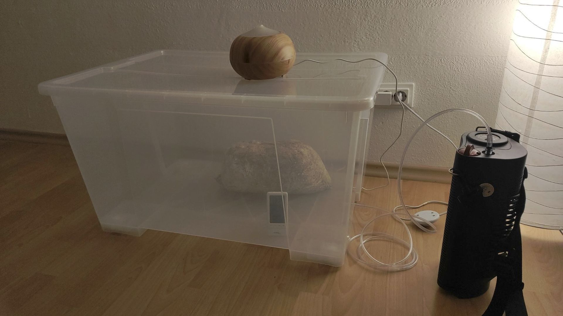 • Deine Ausführungen sind wirklich sehr lehrreich! Habe den Deckel der großen Box verschoben, damit mehr Luft ran kommt. Die Luftfeuchtigkeit kontrolliere ich täglich. Kann sowohl mit einem Ultraschallvernebler als auch mit Sprühflasche nachsteuern. Wieviel Licht braucht der Austernseitling denn in der Fruchtungsphase? Viel kommt durch das Fenster nicht in den Kellerraum. Könnte alternativ unter das Dach ausweichen. Dort ist durch ein großes Fenster mehr Licht und eine konstante Temperatur von um die 16°C. Die Fruchtungsphase hatte ich übrigens mit einer Nacht bei 5°C auf der Terrasse versucht einzuläuten. Offensichtlich also erfolgreich.