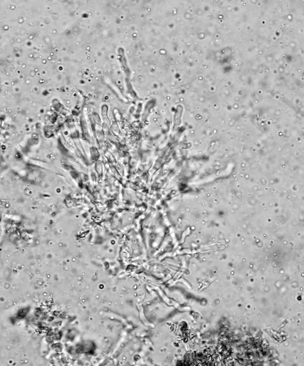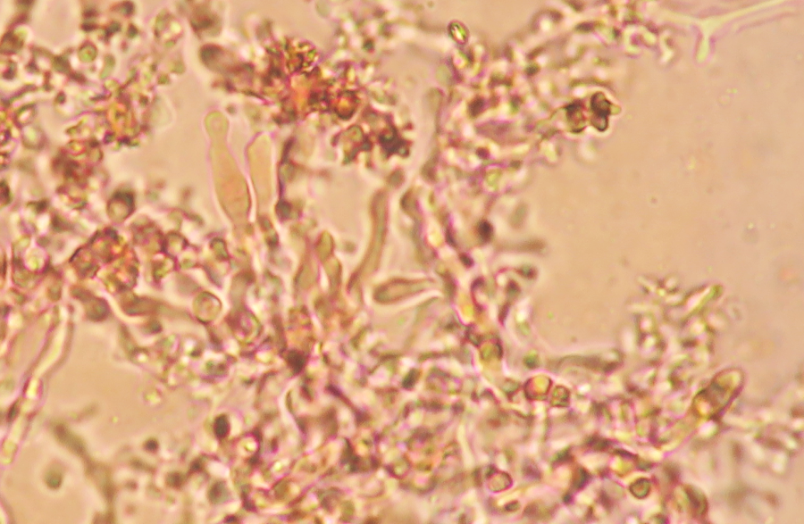 I have already encountered Peniophora albobadia on Ceratonia siliqua, now I found something similar on falling and decaying branches of Olea europaea and possibly Schinus terebinthifolia. Do you confirm the species or I should do further checks. I do have specimens at home.