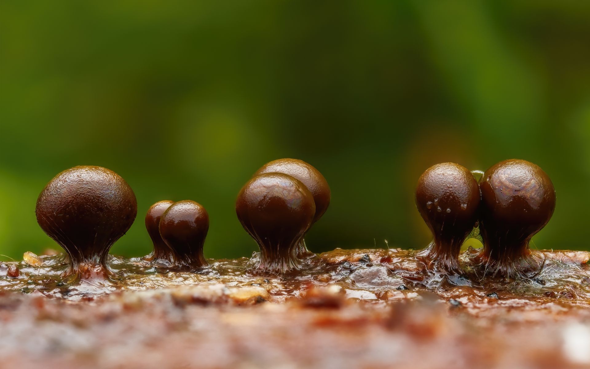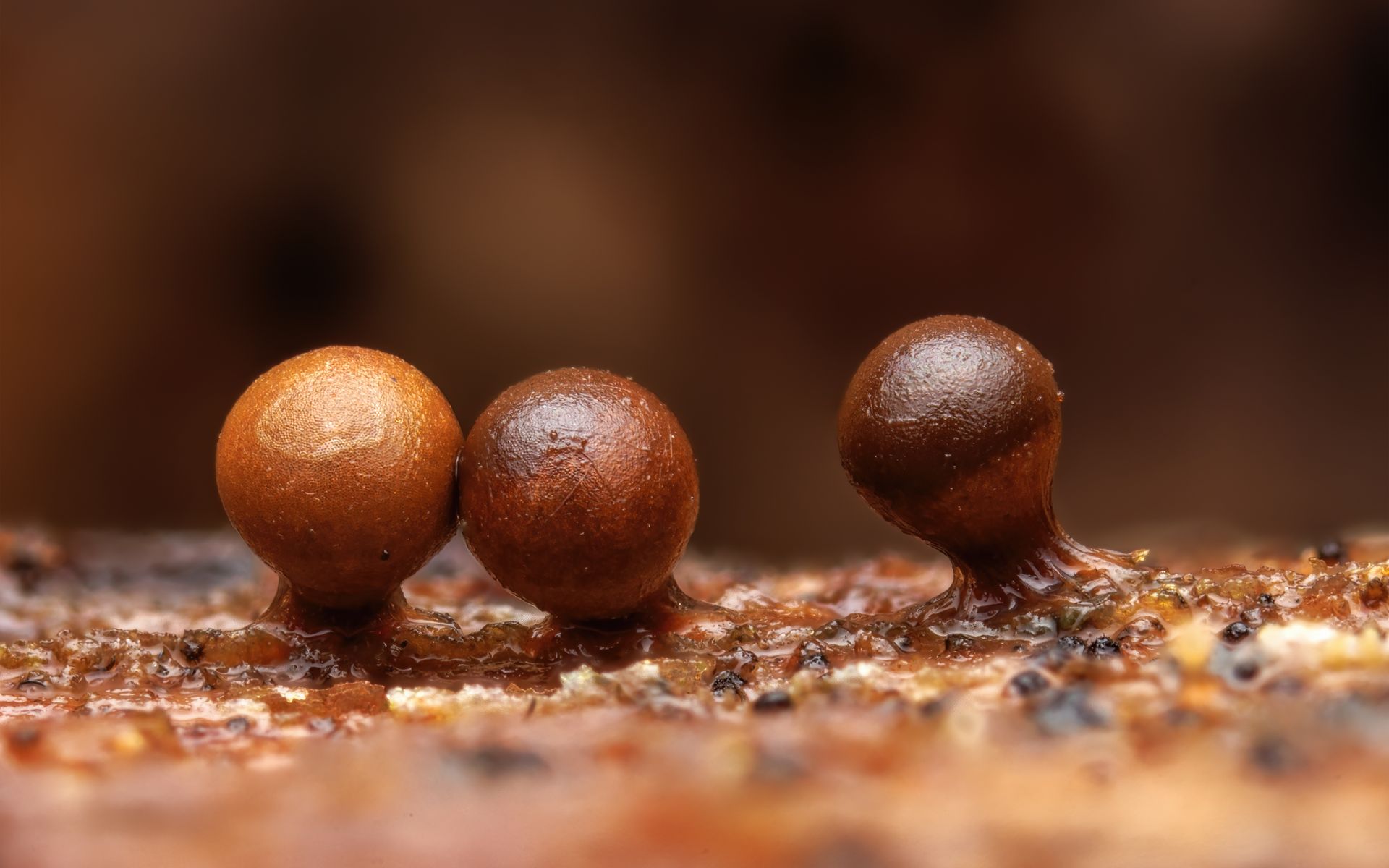 Bei den drei Bildern hier denke ich an Trichia decipiens var. olivacea, aber mich macht stutzig, dass die so kurze Stiele haben...
